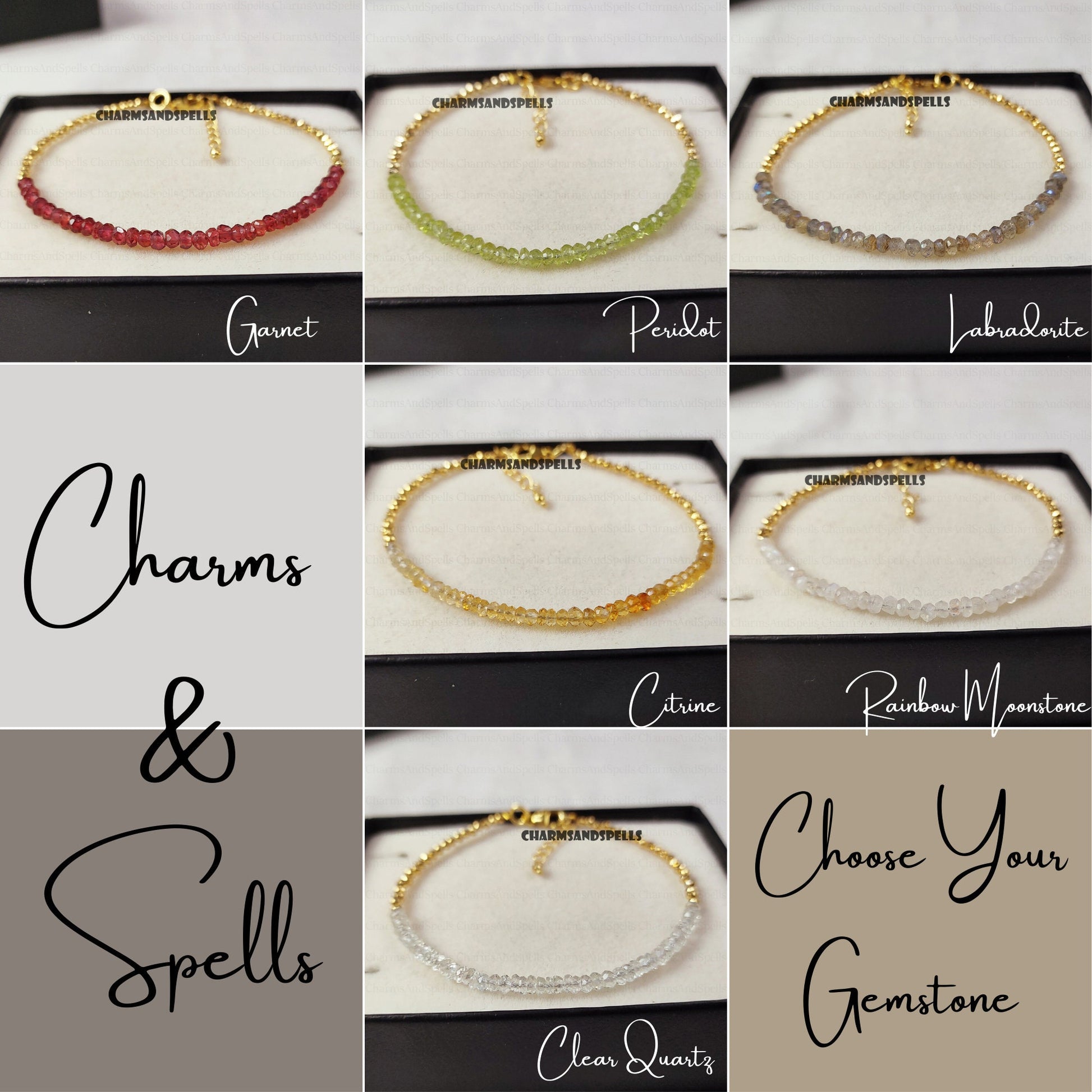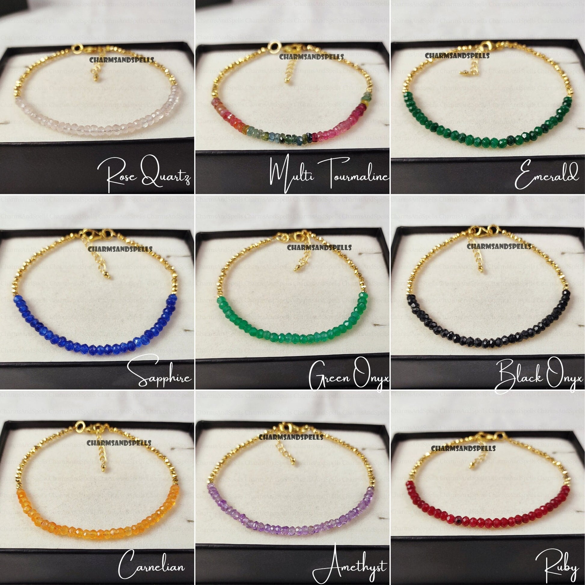 Gemstones: Rose Quartz, Multi Tourmaline, Emerald (Dyed), Sapphire (Dyed), Green Onyx, Black Onyx, Carnelian, Amethyst, Ruby (Dyed), Garnet, Peridot, Labradorite, Citrine, Rainbow Moonstone, Clear Quartz