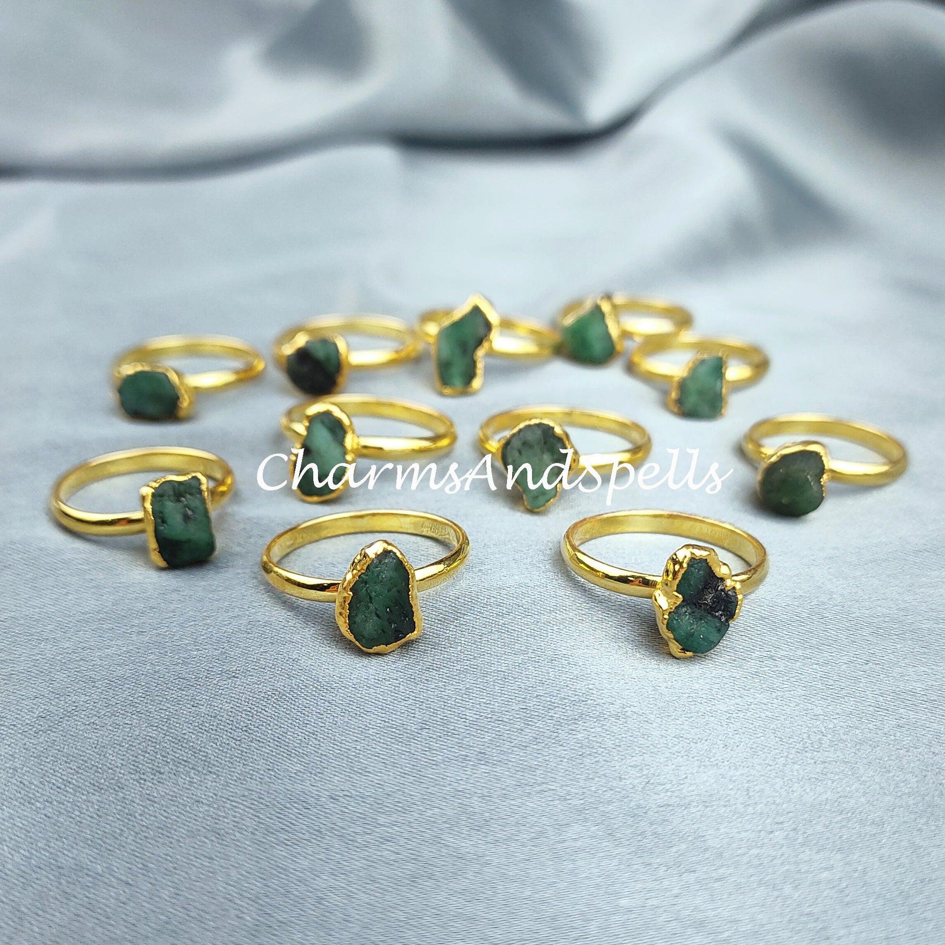 Raw Emerald Electroplated Ring| Handmade Gemstone Adjuatable Ring