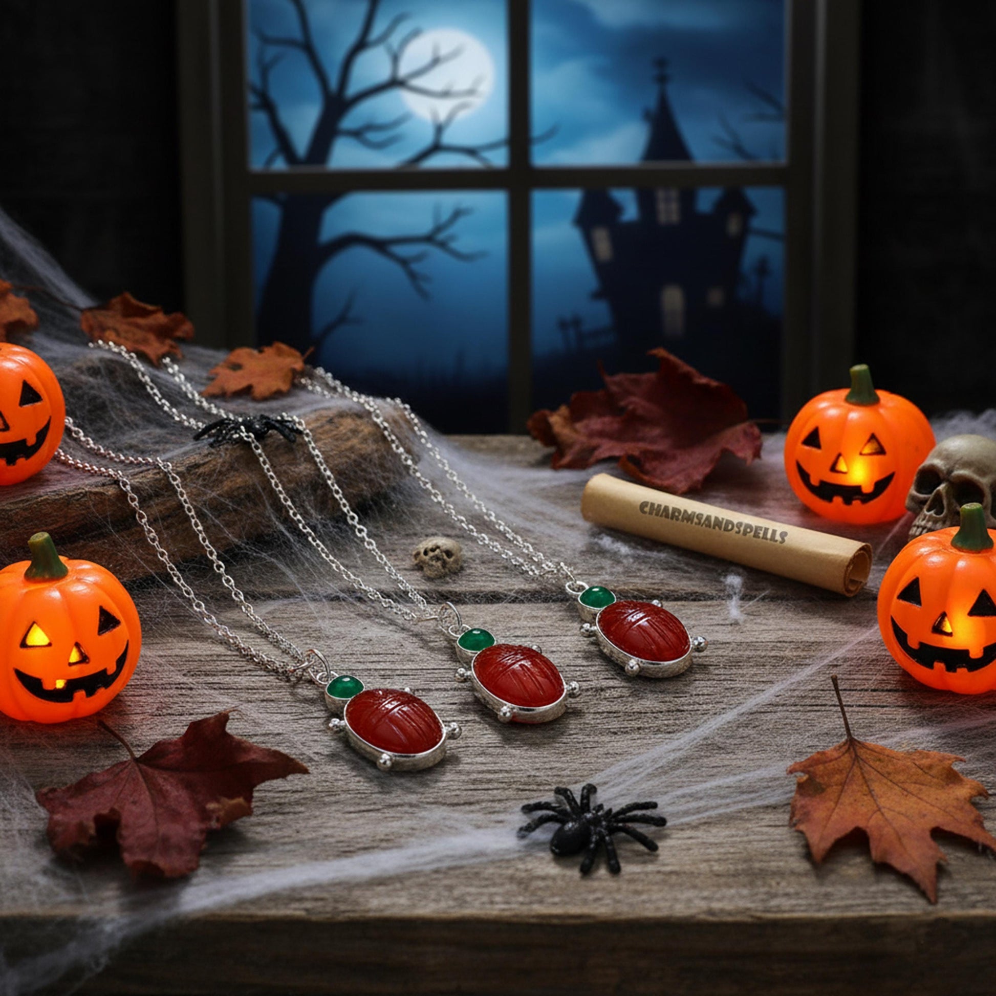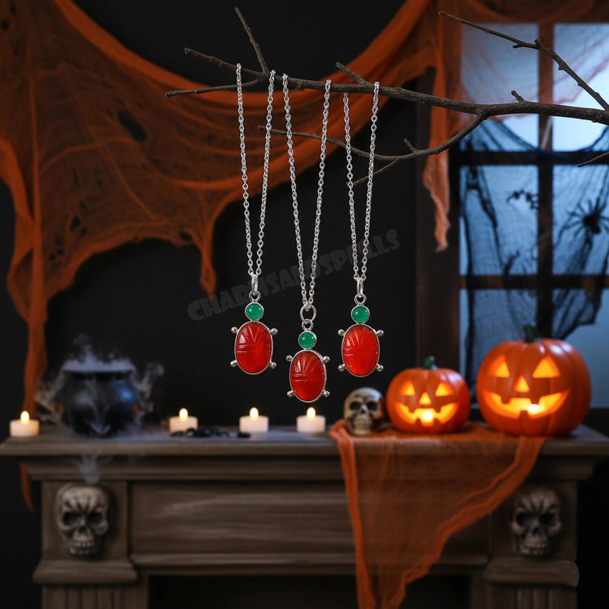 Carnelian Ladybug Necklace, 925 Silver Insect Charm, Handcarved Vintage Jewelry