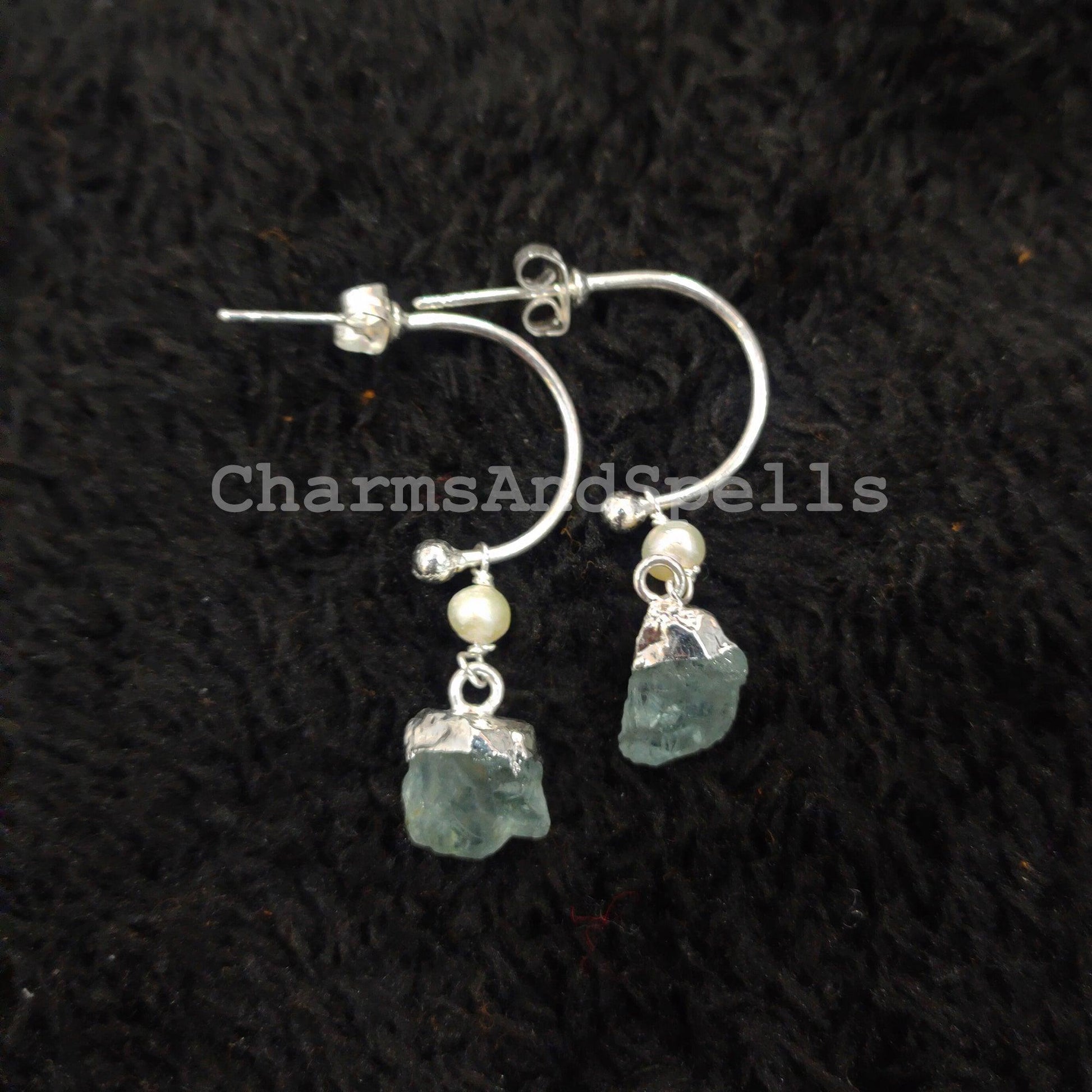 Raw Aquamarine Earrings | Electroplated Birthstone Gemstone