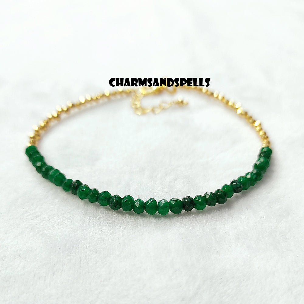 Dainty Emerald Bracelet | 925 Sterling Silver May Birthstone Jewelry