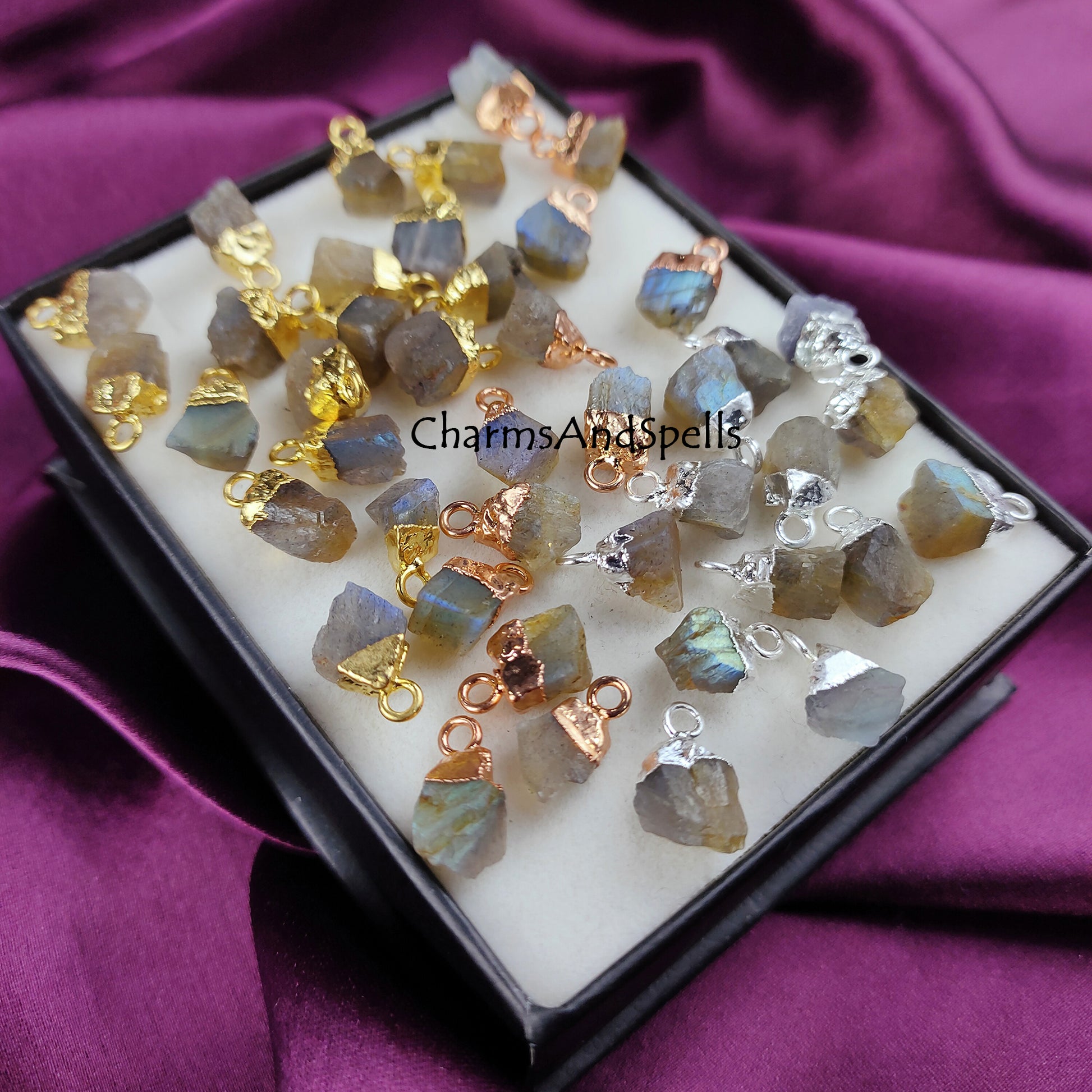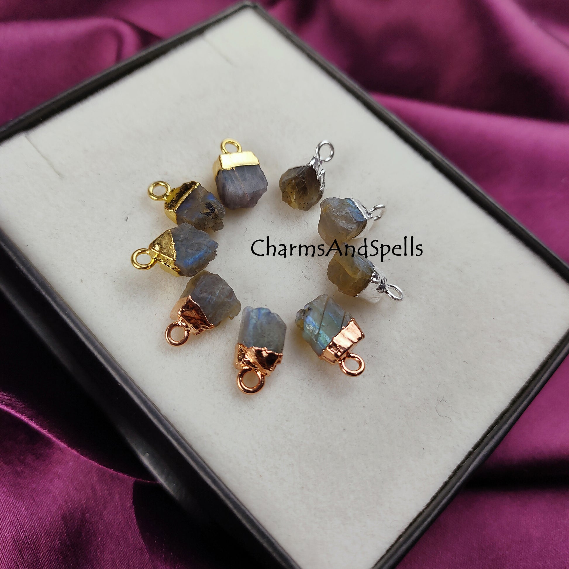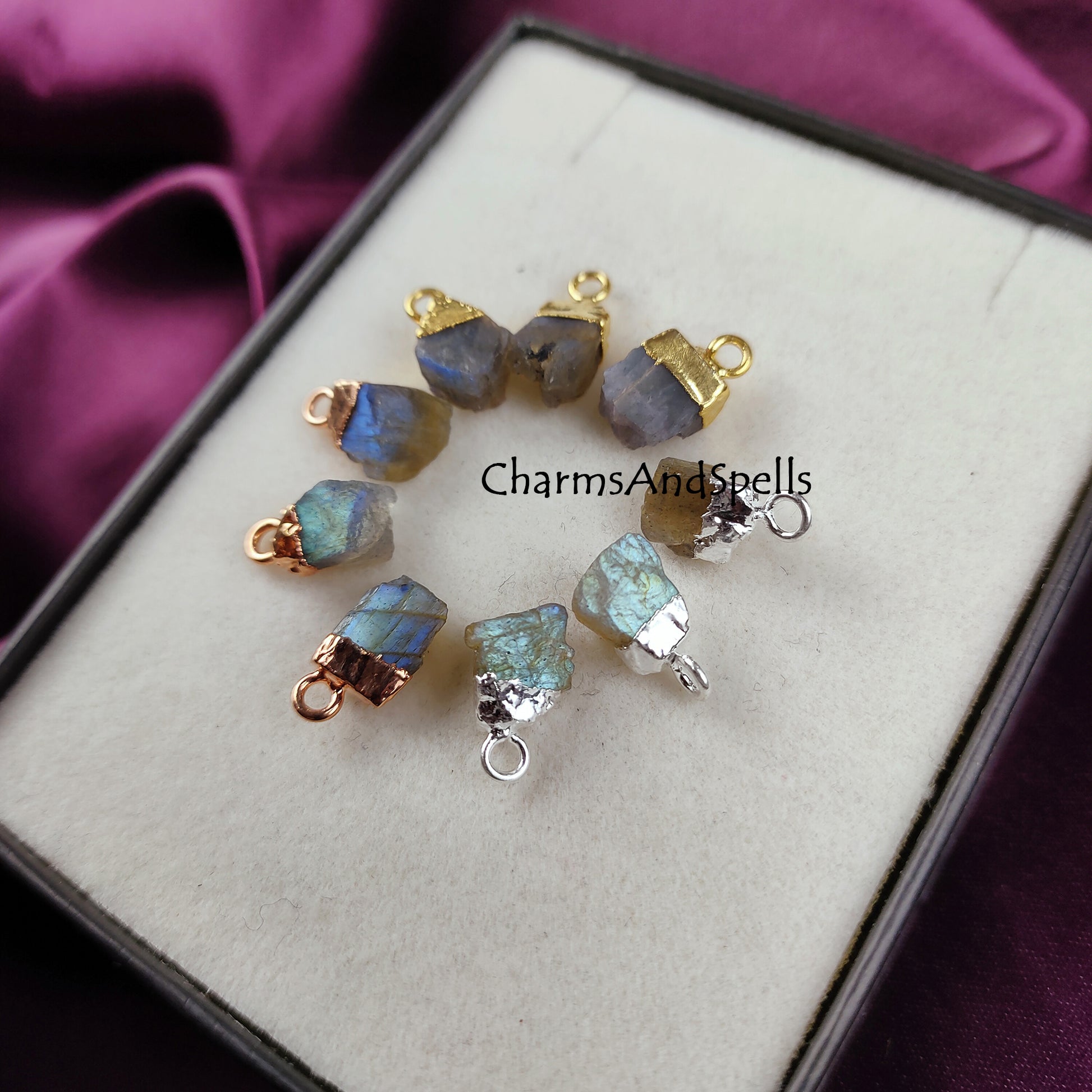 Labradorite Rough Crystal Connector | Healing & Transformation Stone Charm Pendant