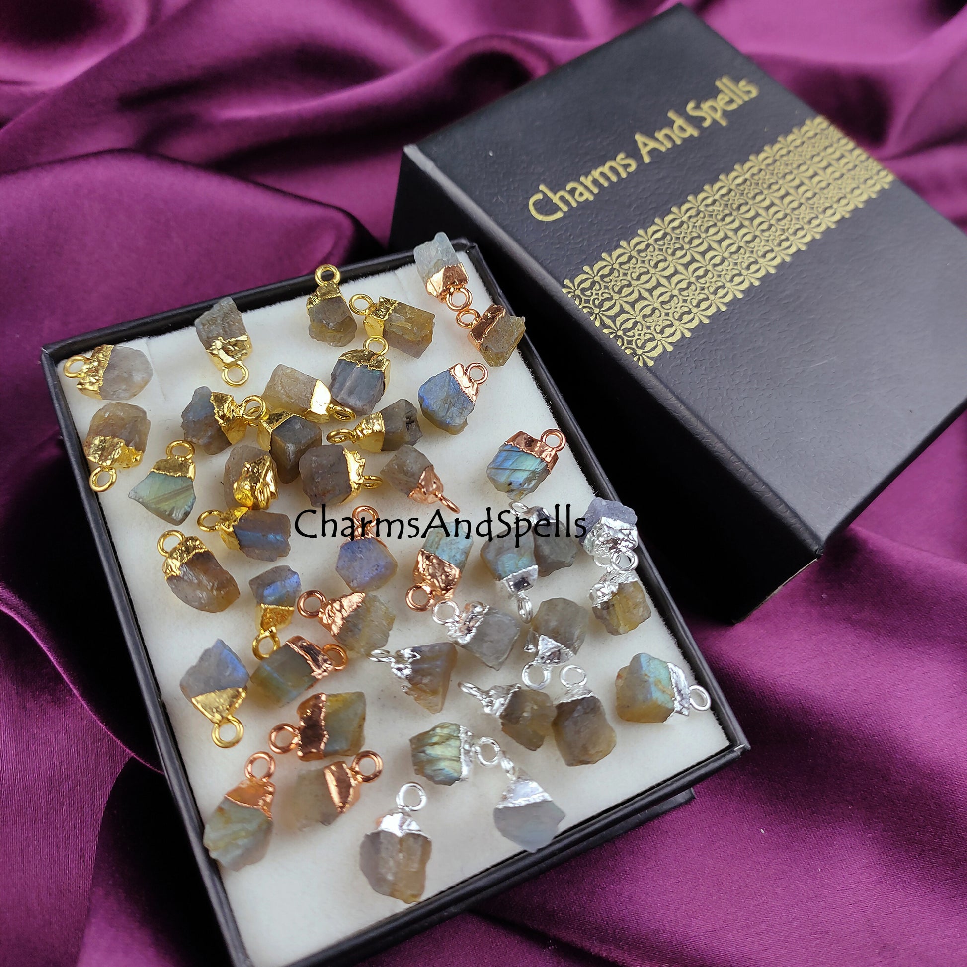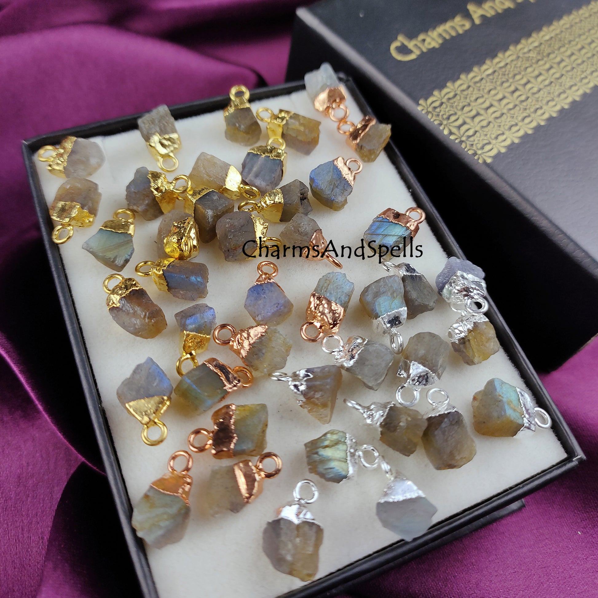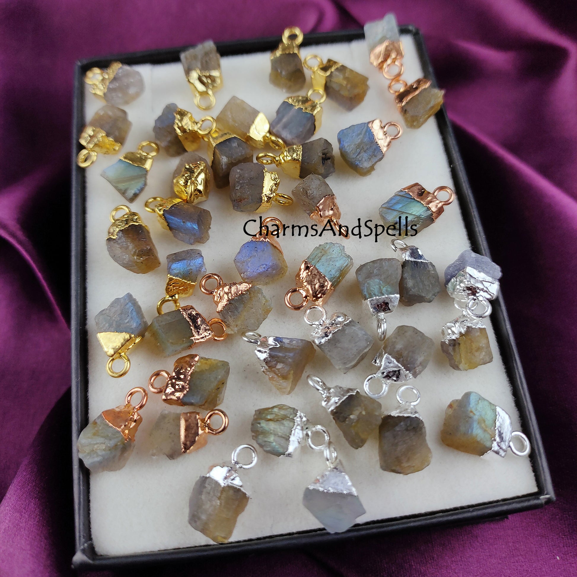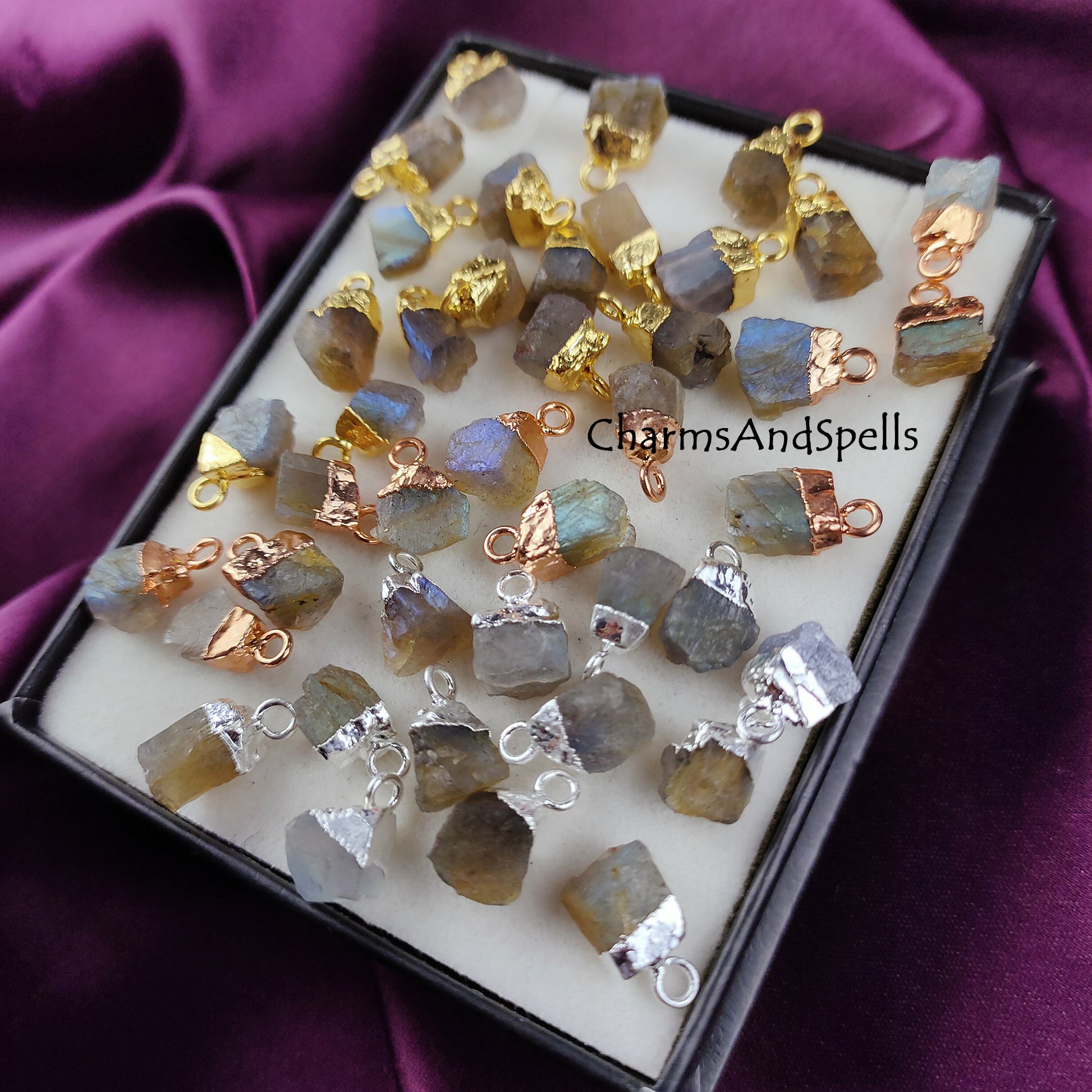 Labradorite Rough Crystal Connector | Healing & Transformation Stone Charm Pendant