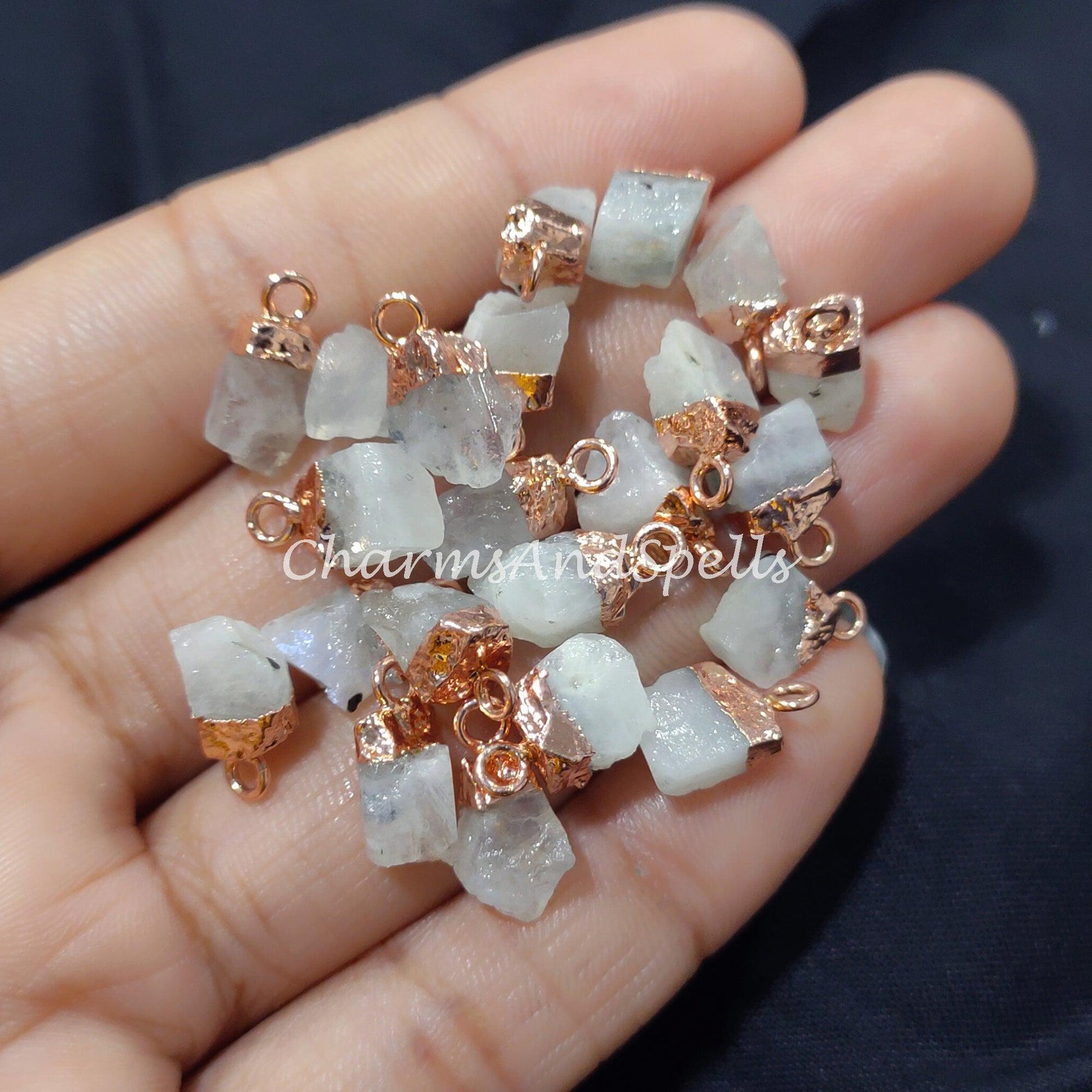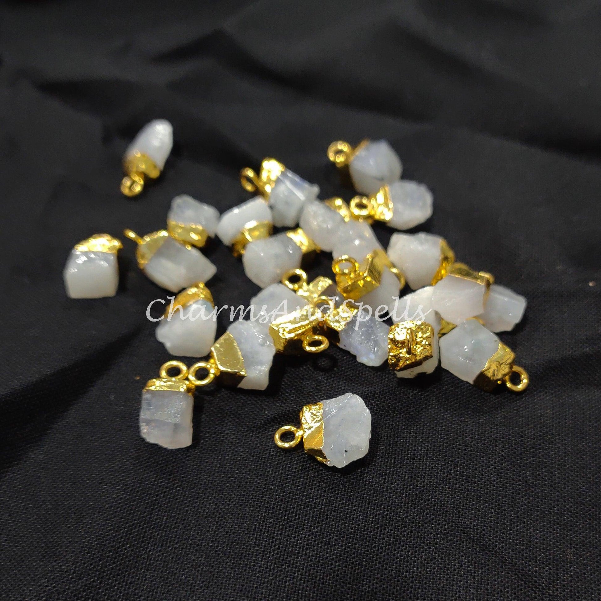 Raw Moonstone Electroplated Pendant Connector| Jewelry Stone