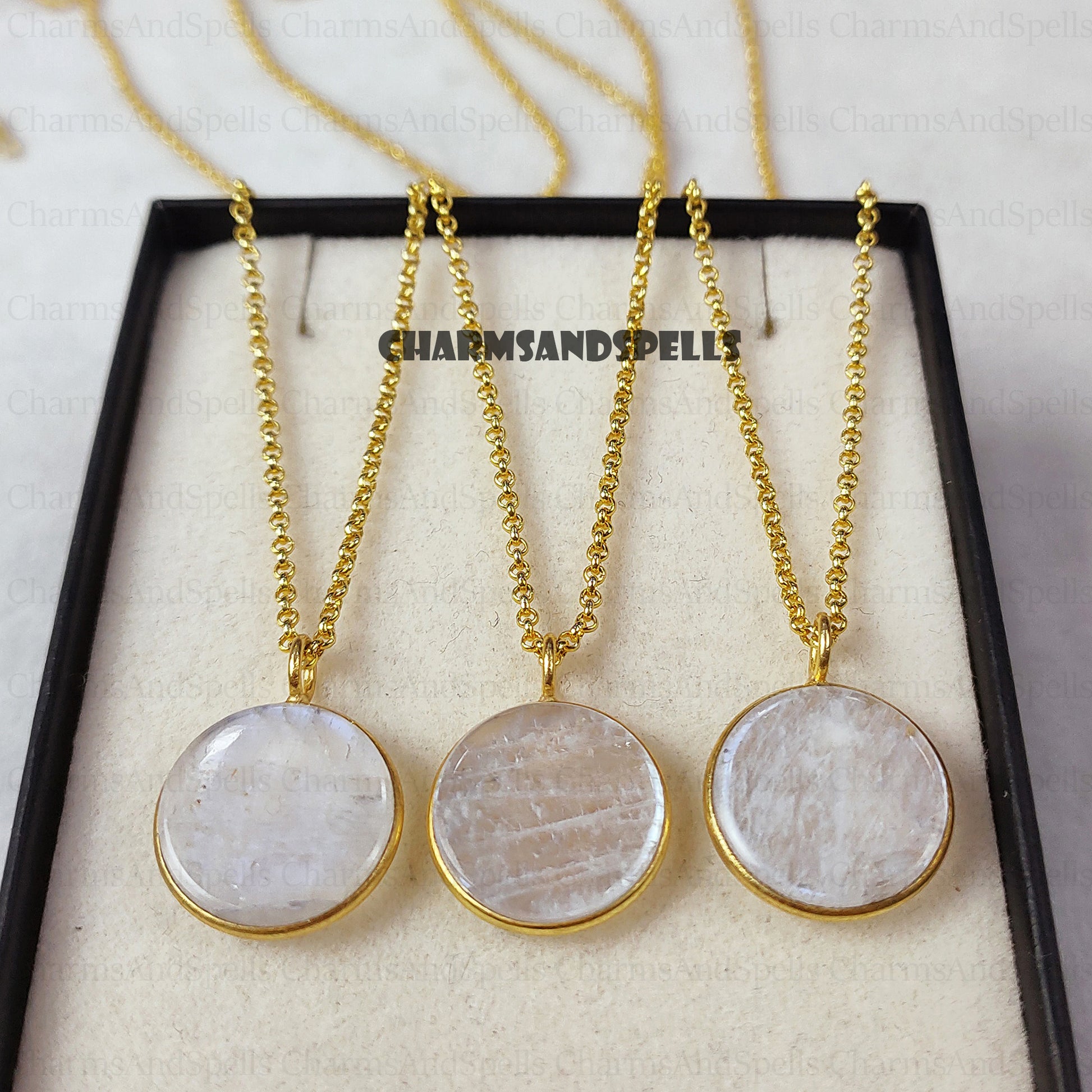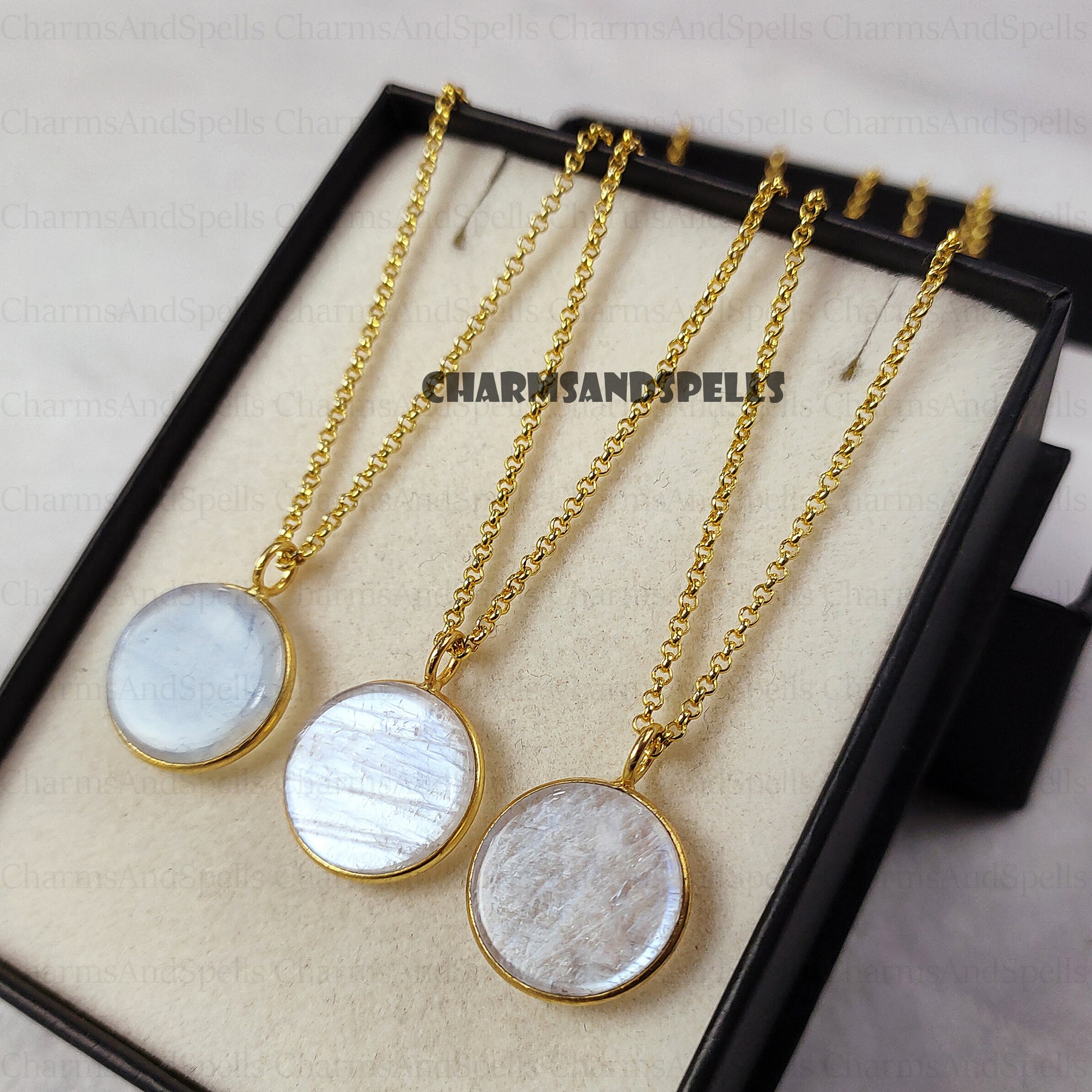 Natural Blue Fire Moonstone Pendant Necklace, Gemstone Jewelry