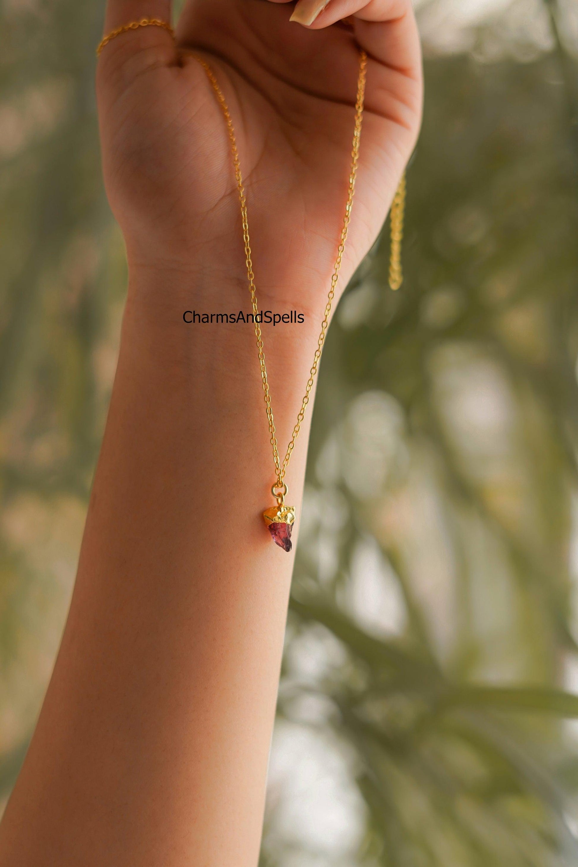 Garnet Necklace | Red Raw Gemstone Boho January Birthstone