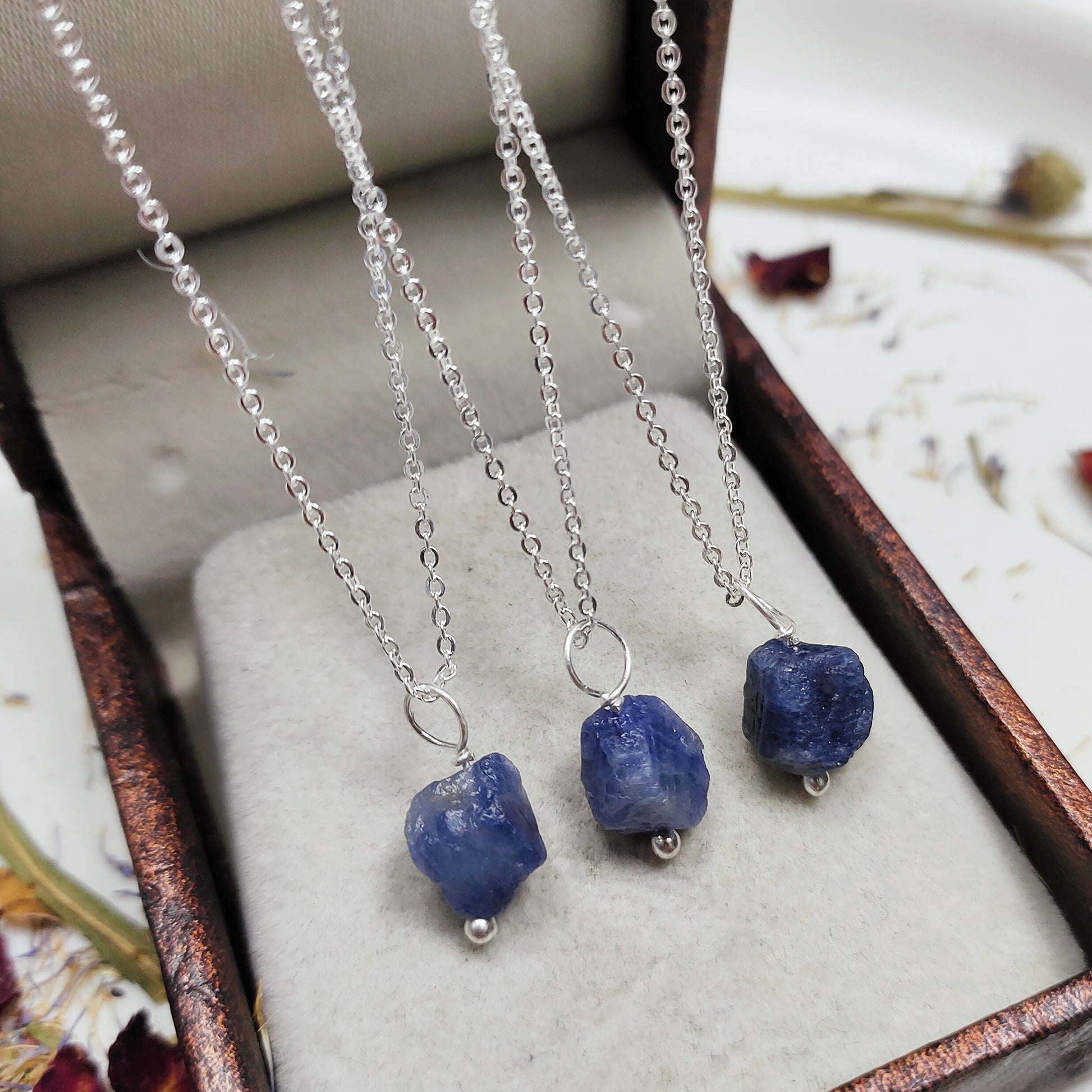 Raw Blue Sapphire Necklace, 925 Sterling Silver Pendant, September Birthstone Jewelry