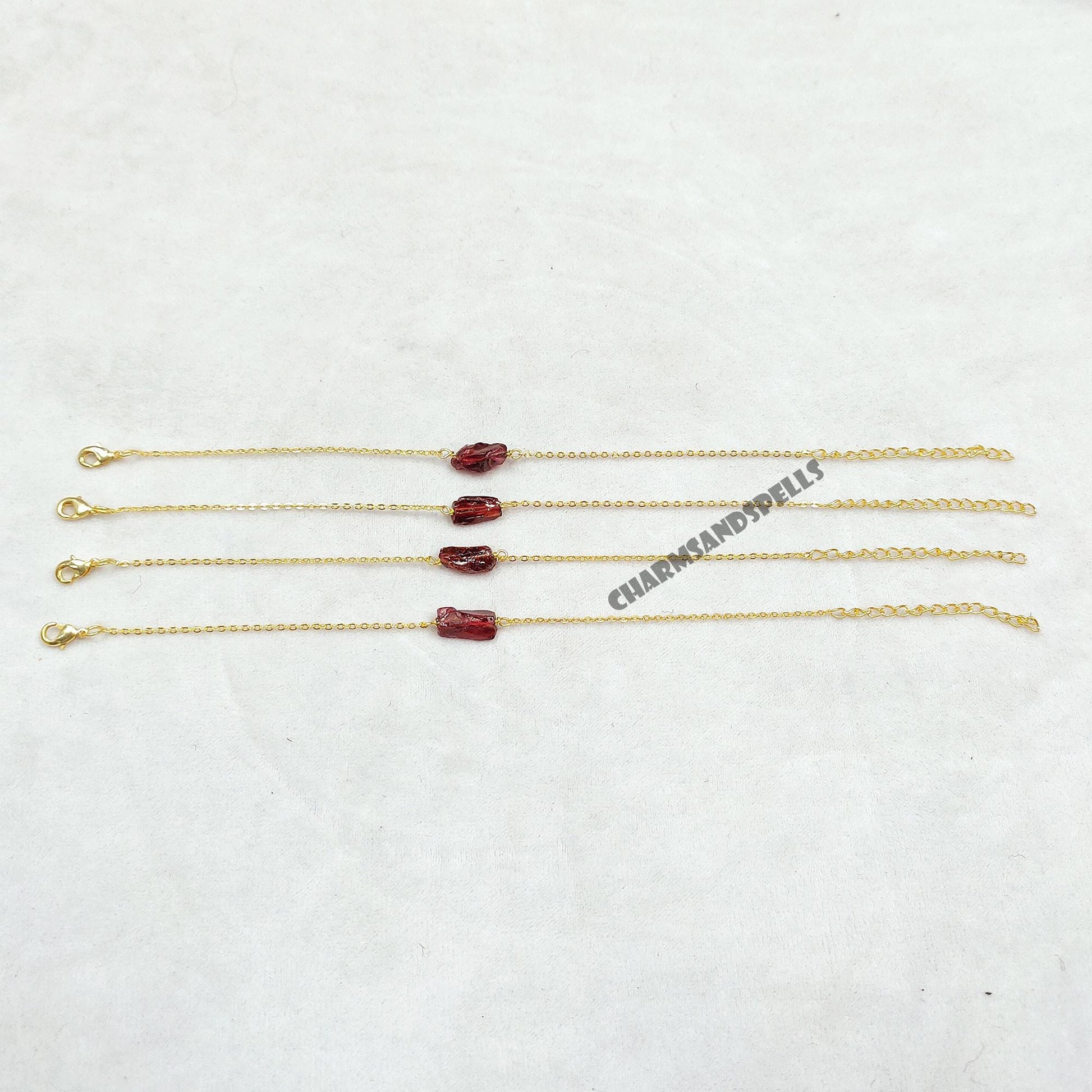 Natural Red Garnet Bracelet | Raw January Birthstone Jewelry | Valentine Gift