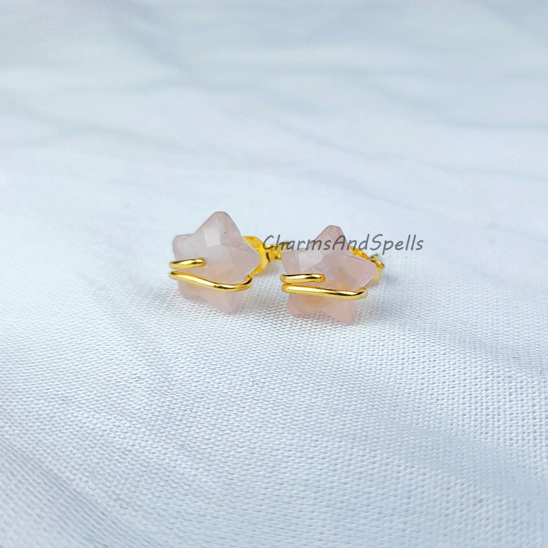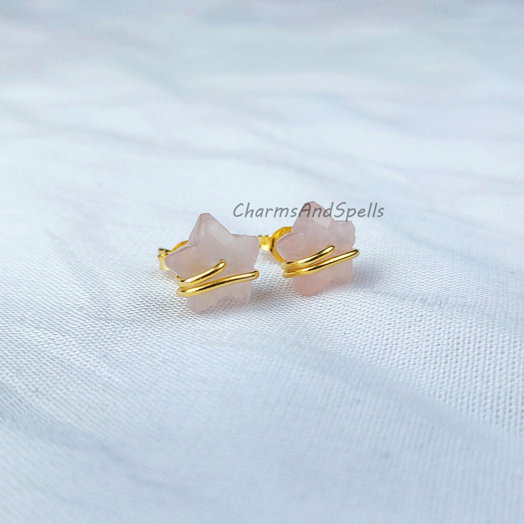 Natural Rose Quartz Star Earrings In 925 Sterling Silver