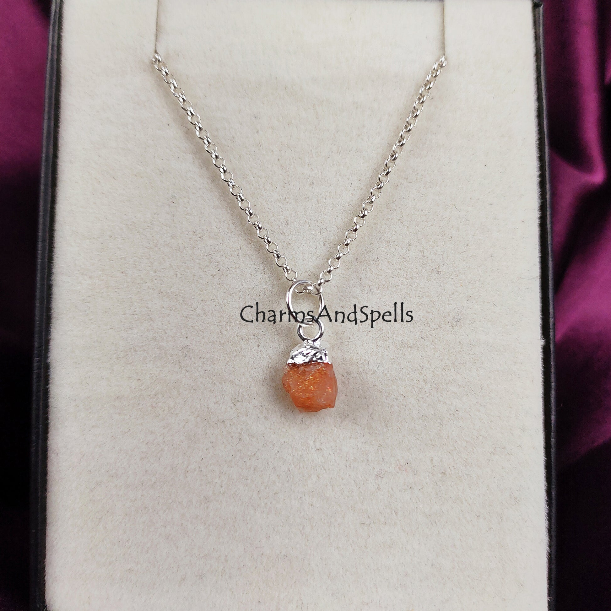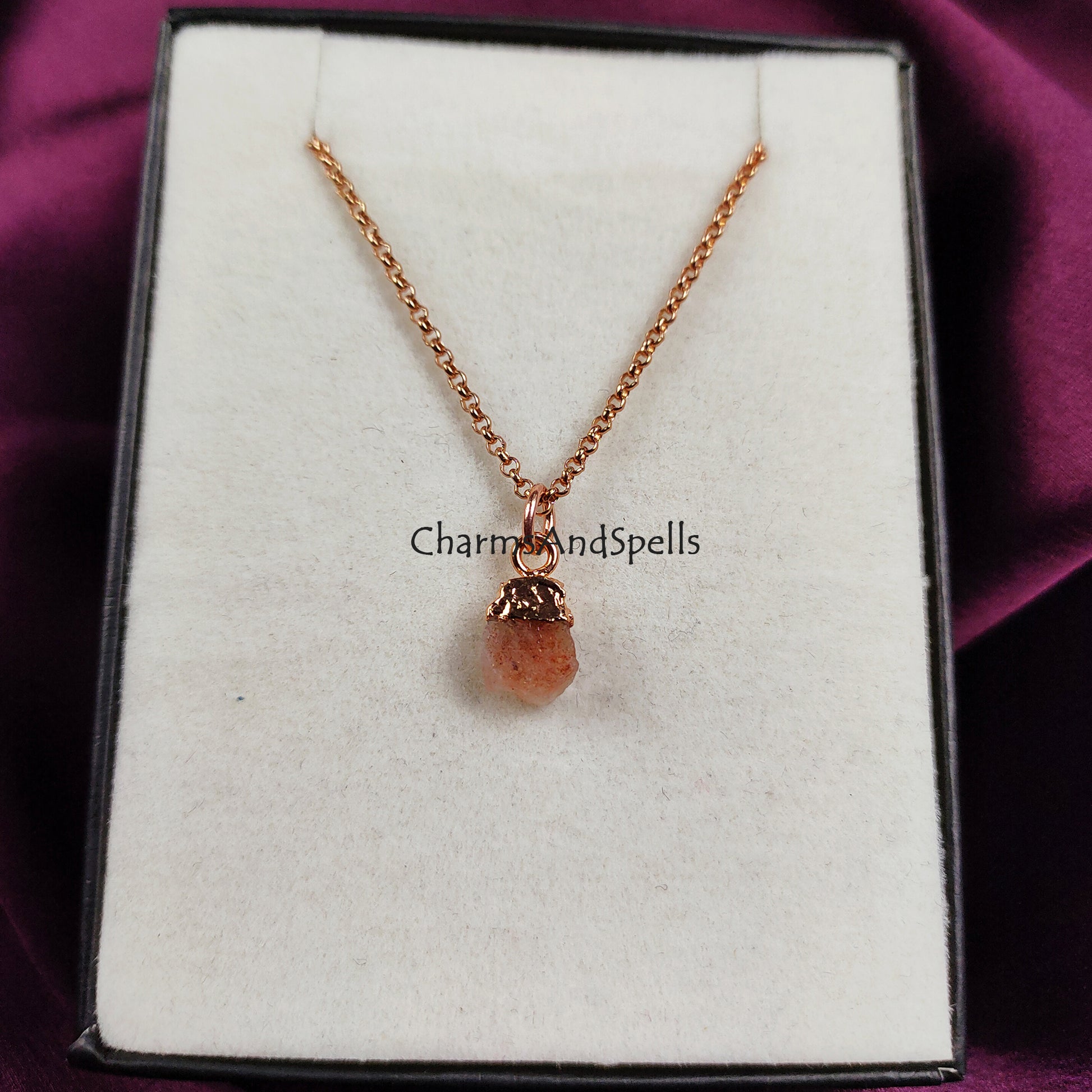 Raw Sunstone Necklace | Natural Gemstone Pendant Gold Plated Boho Jewelry