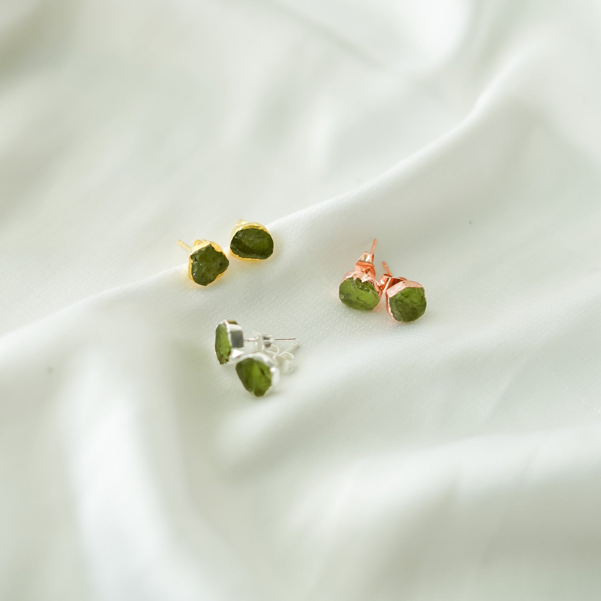 Peridot Crystal Stud Earrings| Green Gemstone Jewelry| Dainty Peridot Earrings
