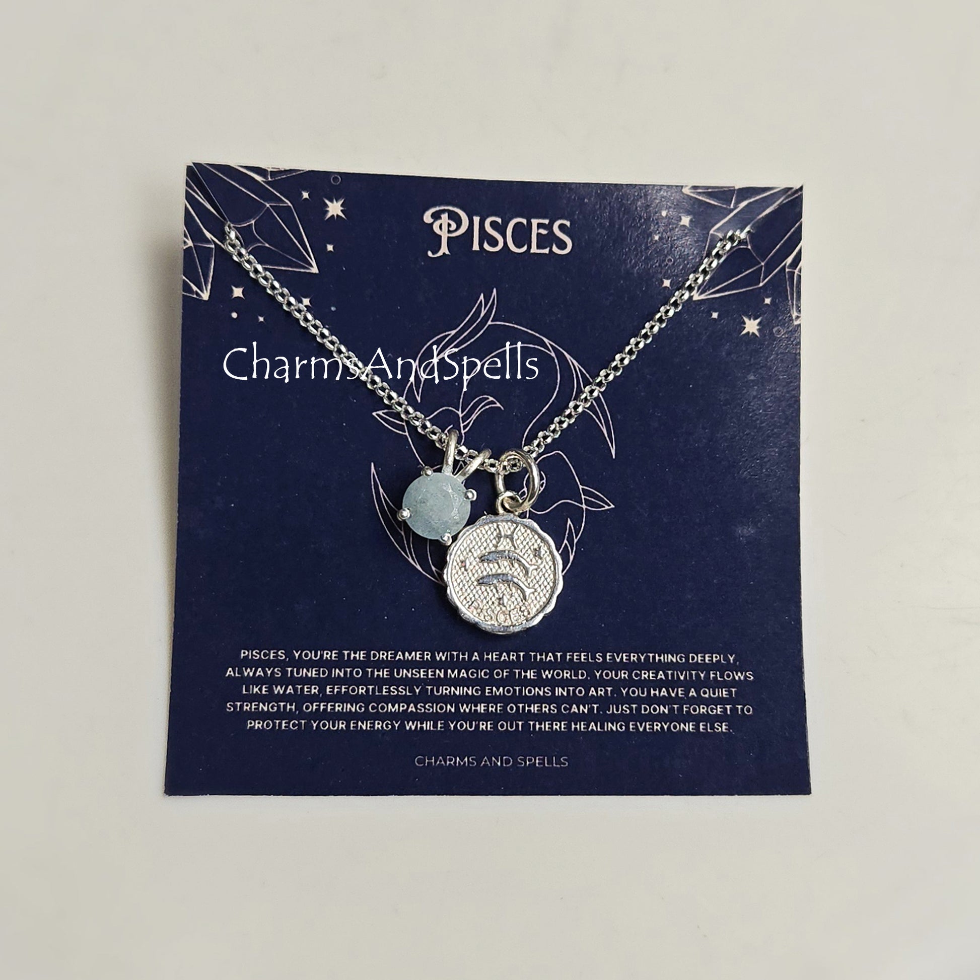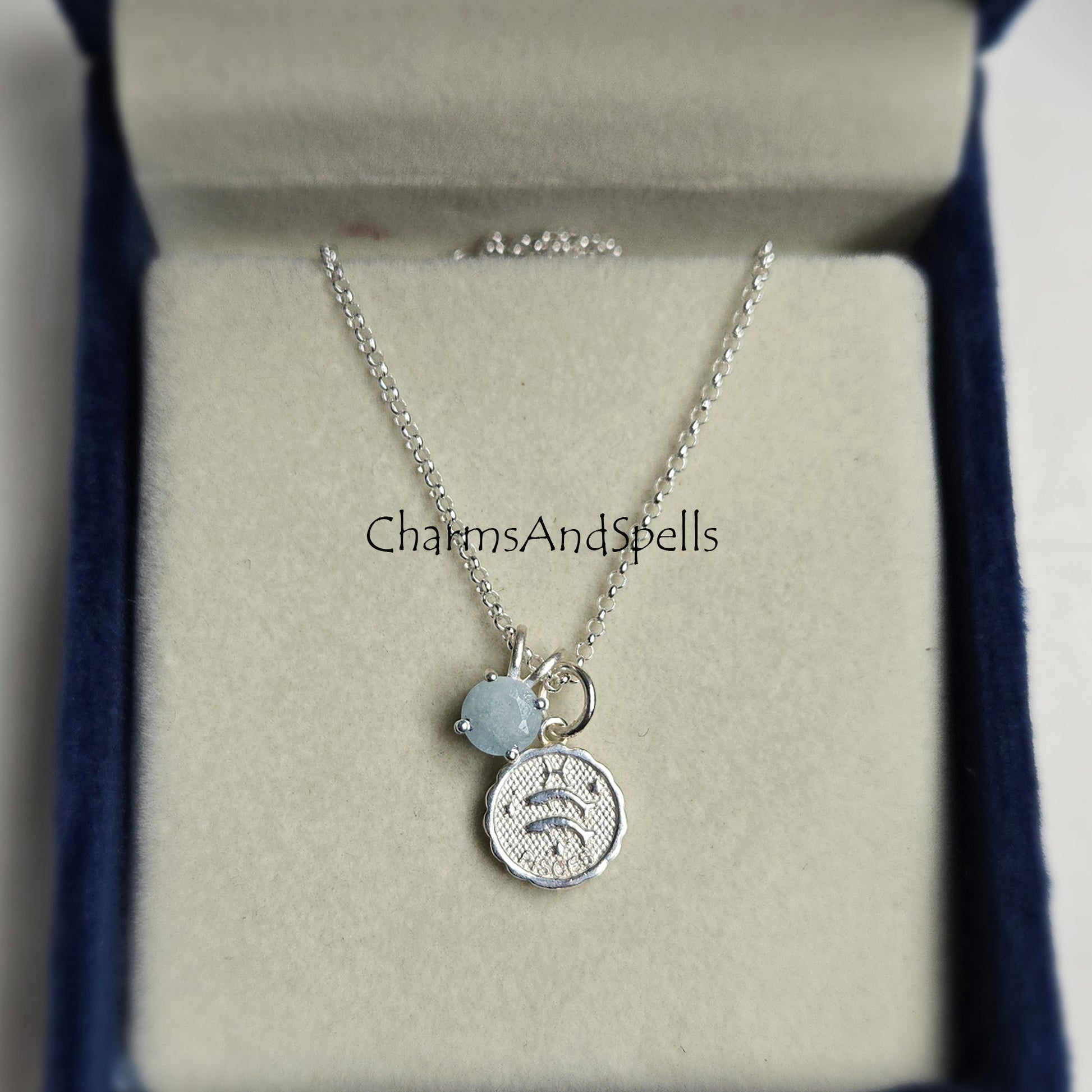 Pisces Aquamarine Pendant Necklace | Solid Silver Zodiac Jewelry