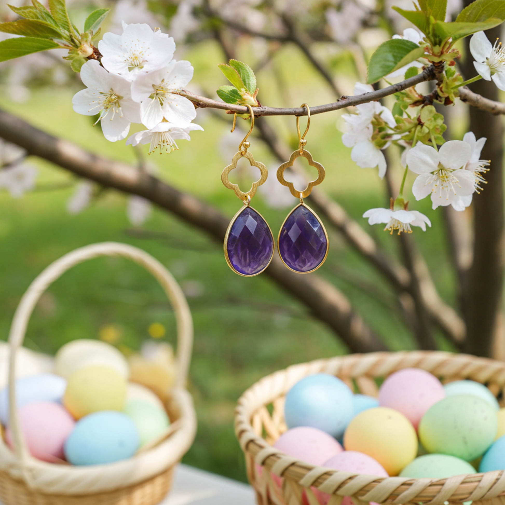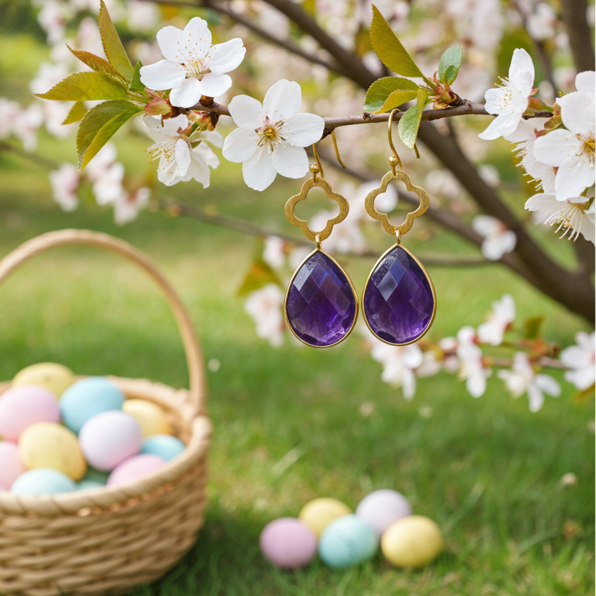 Purple Amethyst Earrings| Gold Plated Gemstone Jewelry| February Birthstone