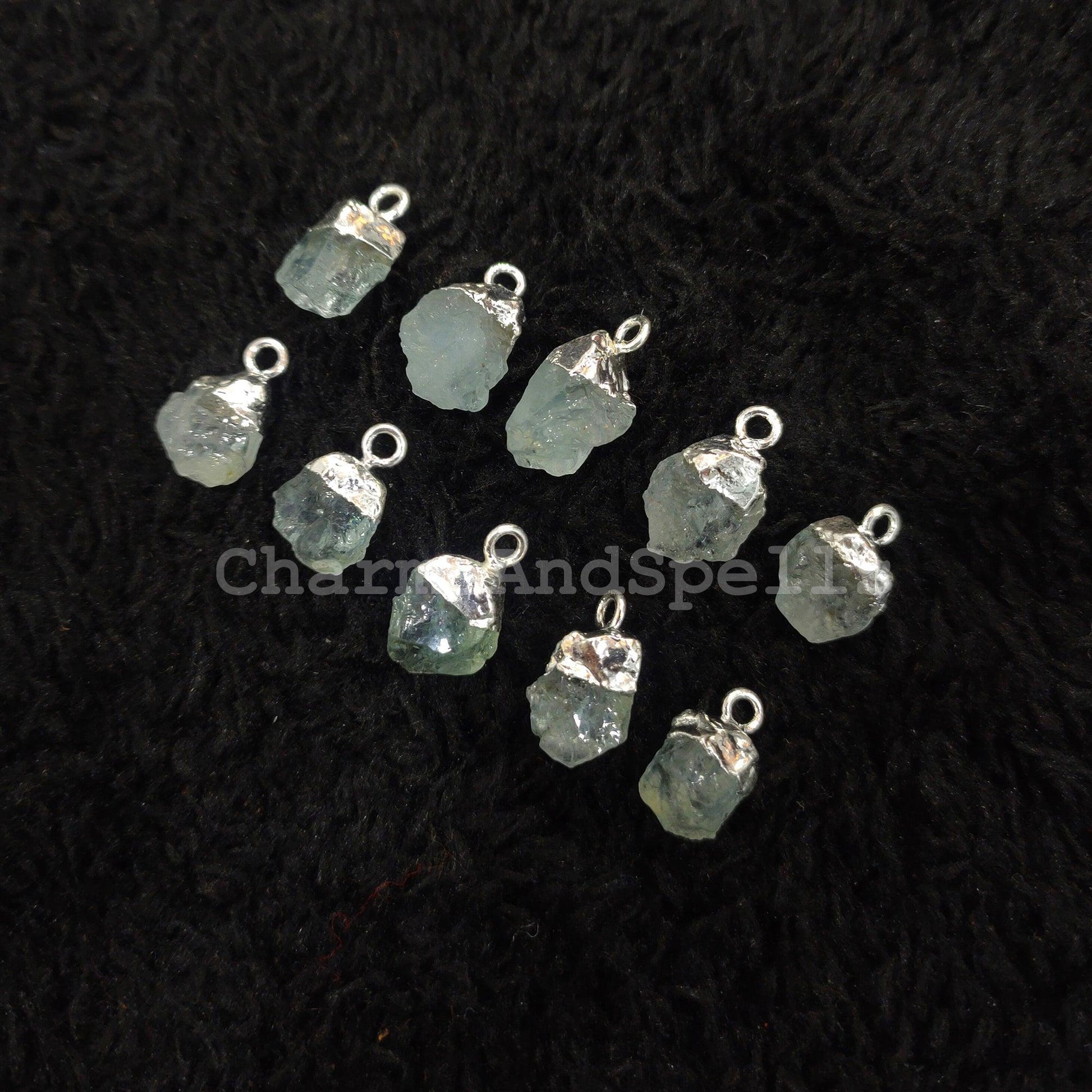 Raw Aquamarine Charm | Electroplated Rough Pendant Birthstone Connector