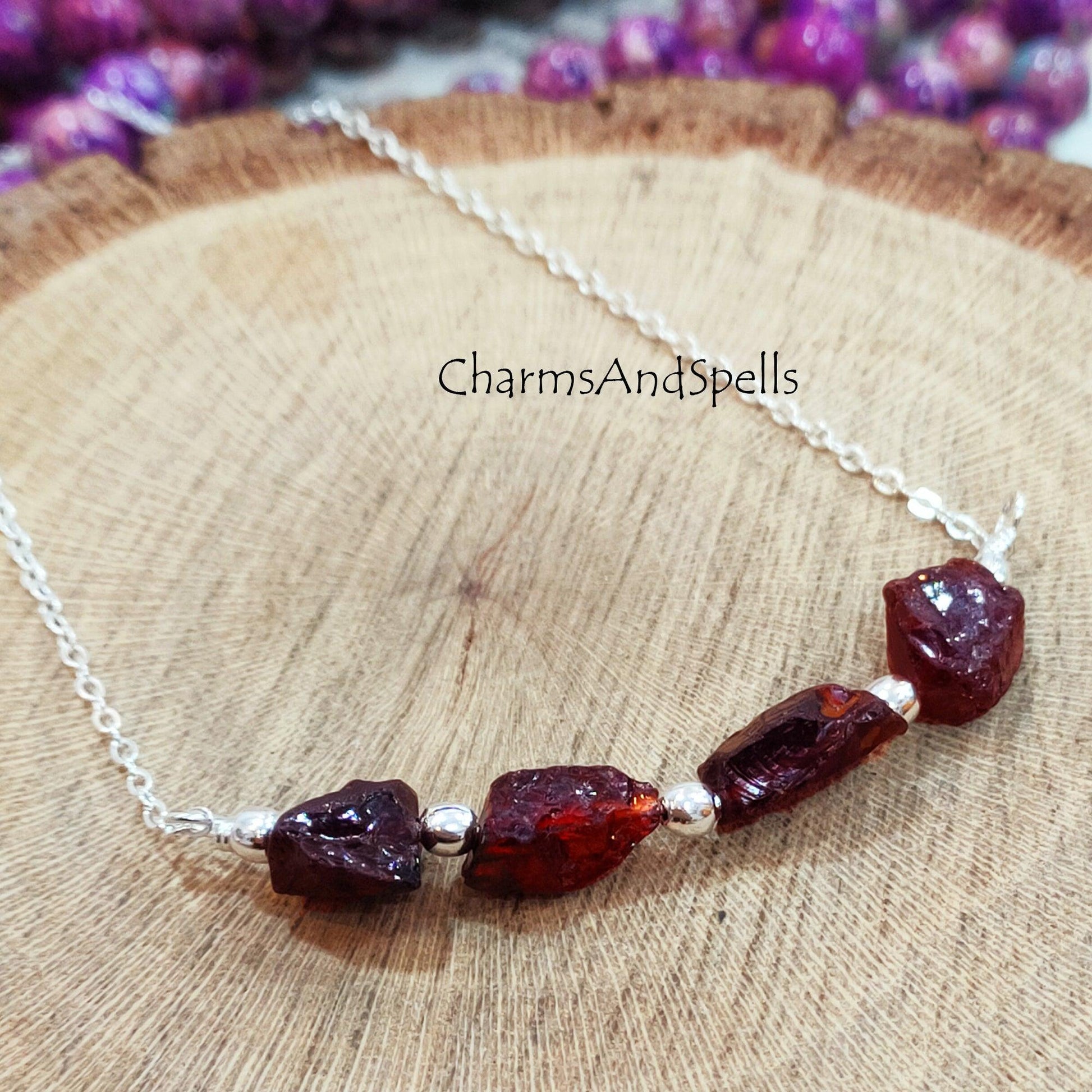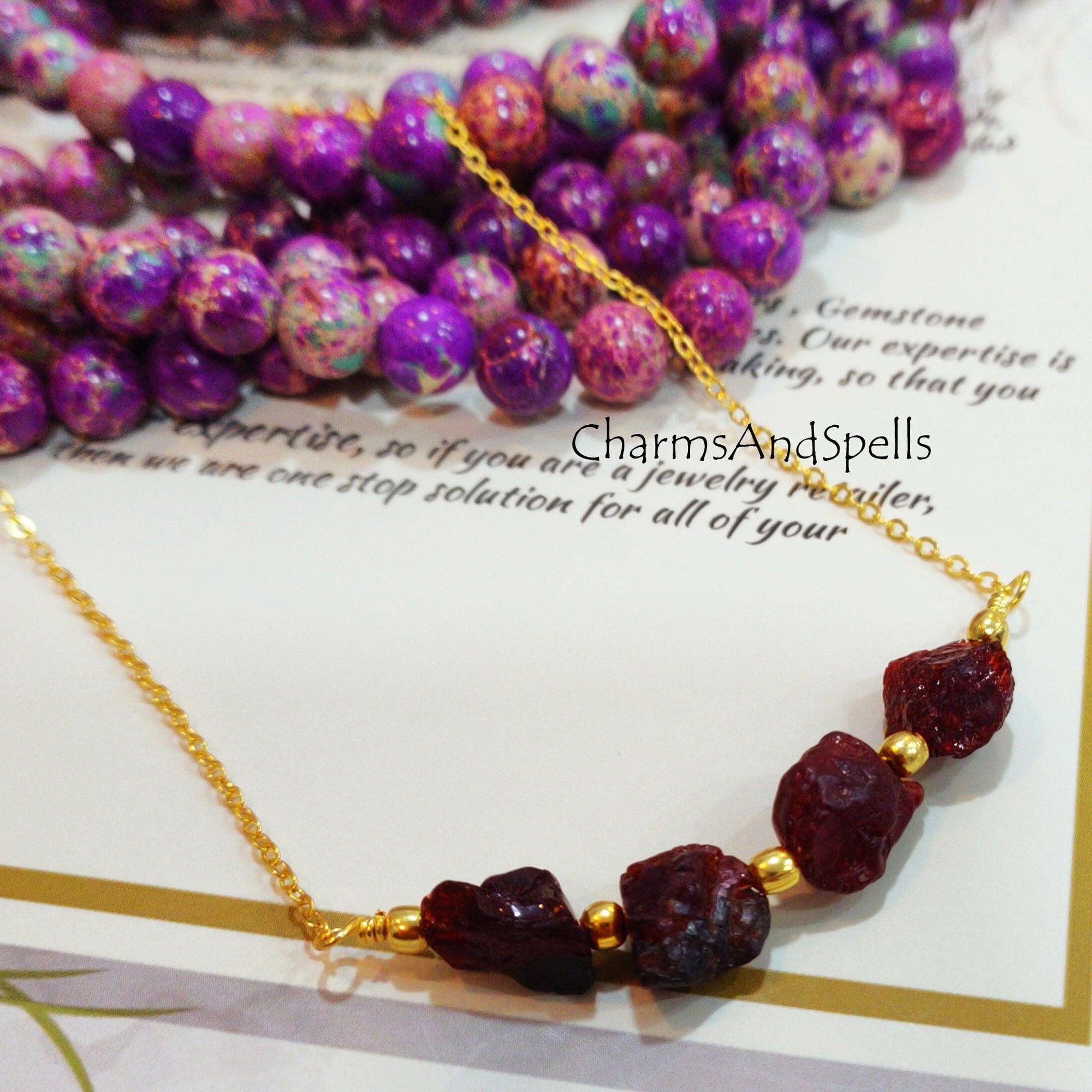 Raw Red Garnet Necklace | January Birthstone Imitation Beaded Jewelry