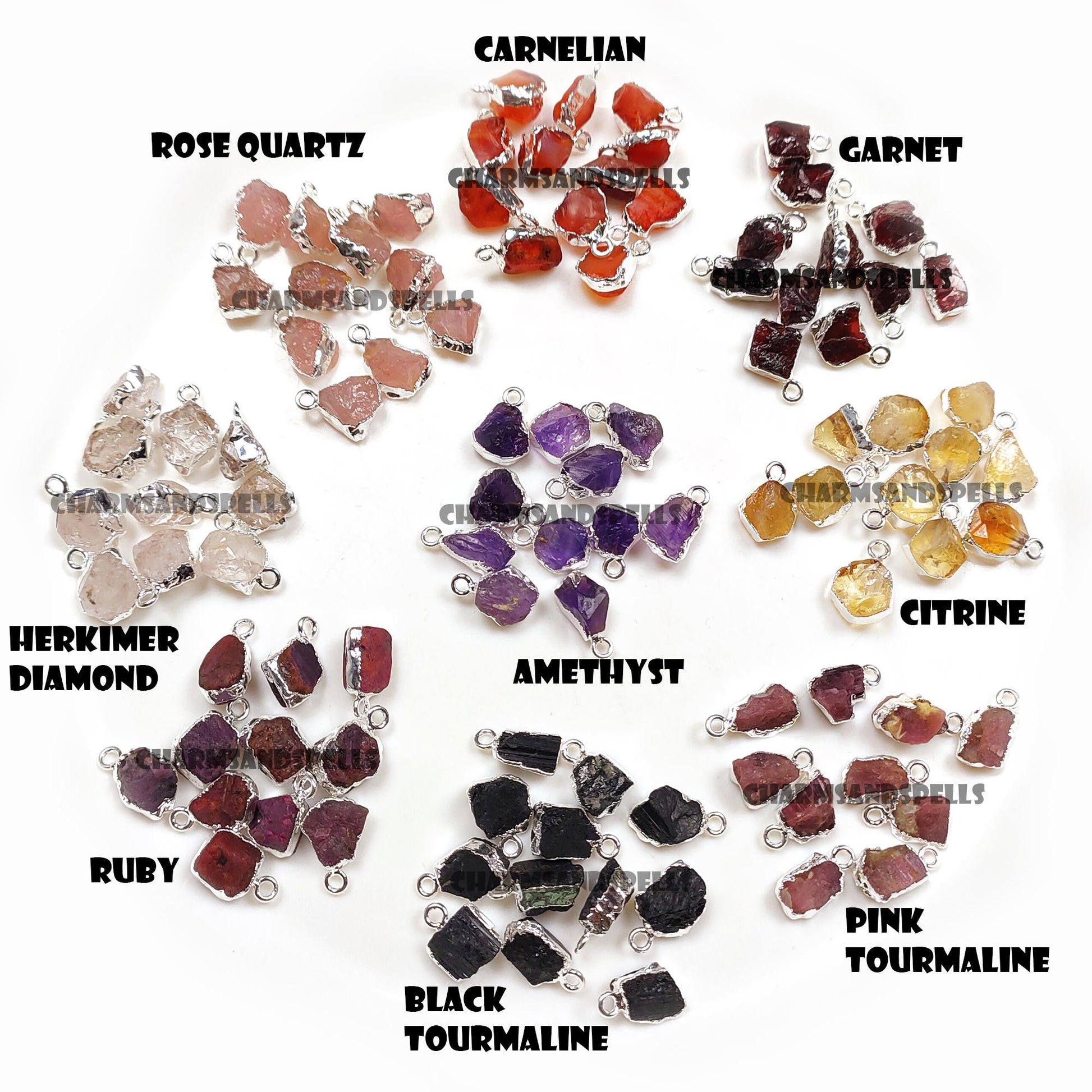 Gemstones: Variety of Raw, Natural Crystals (Birthstone Charms).