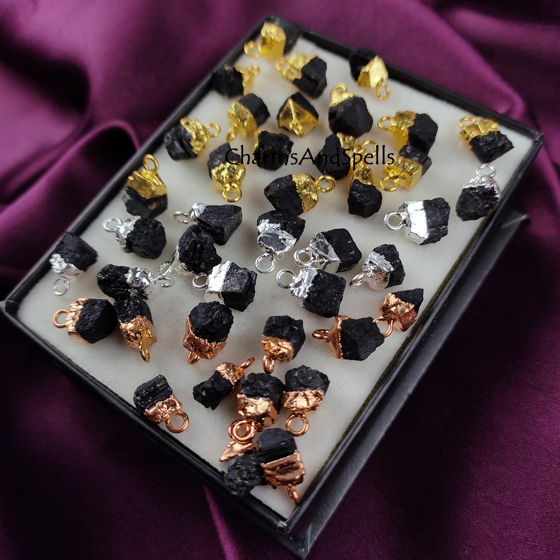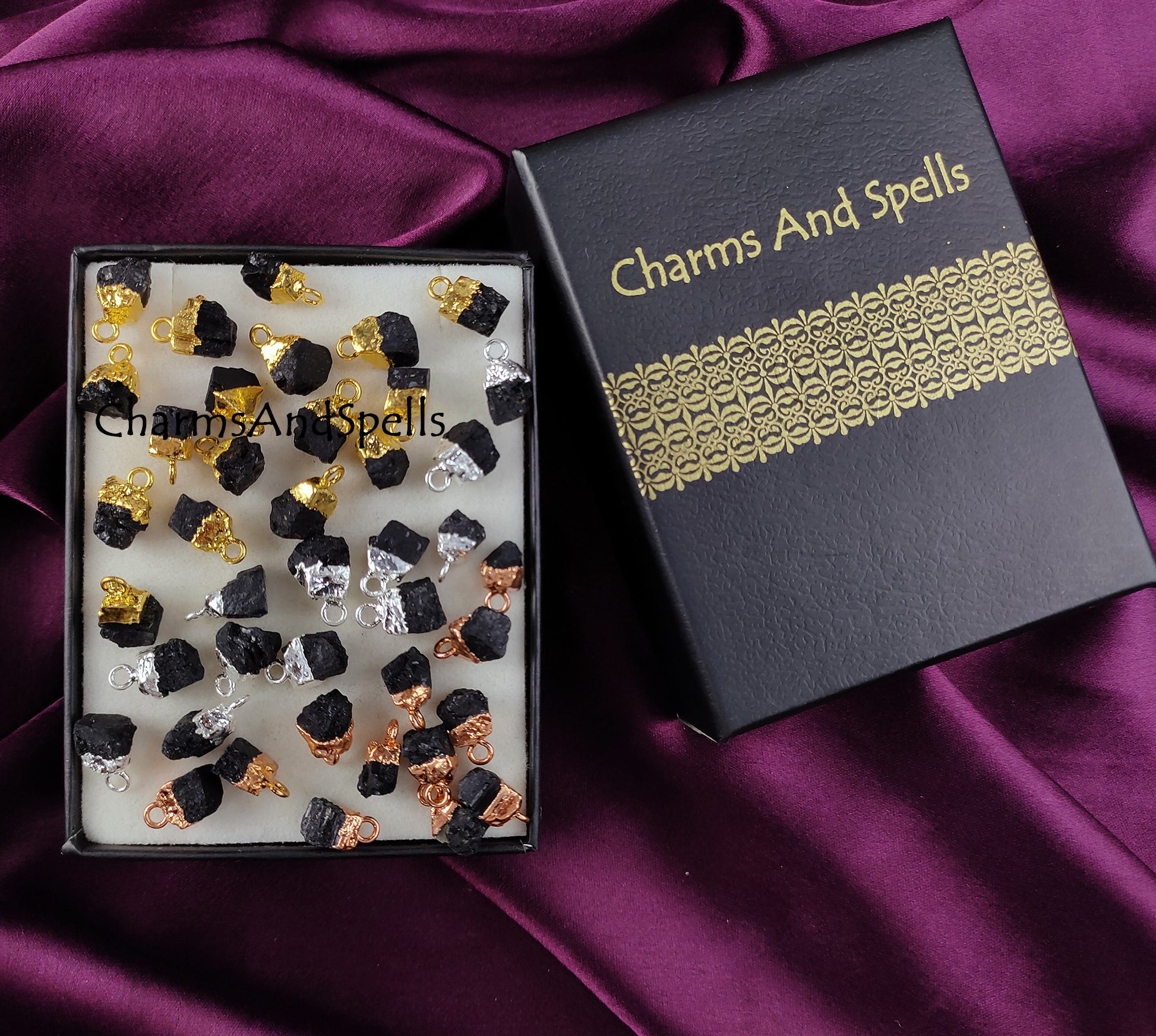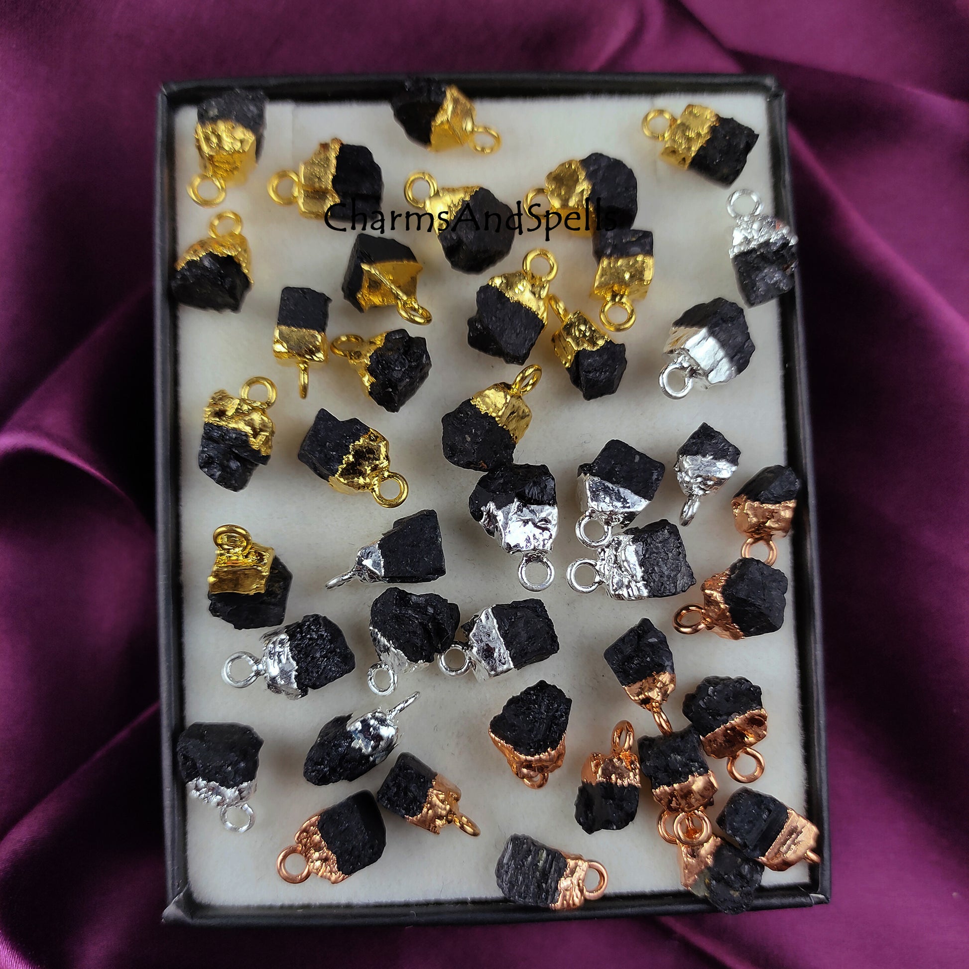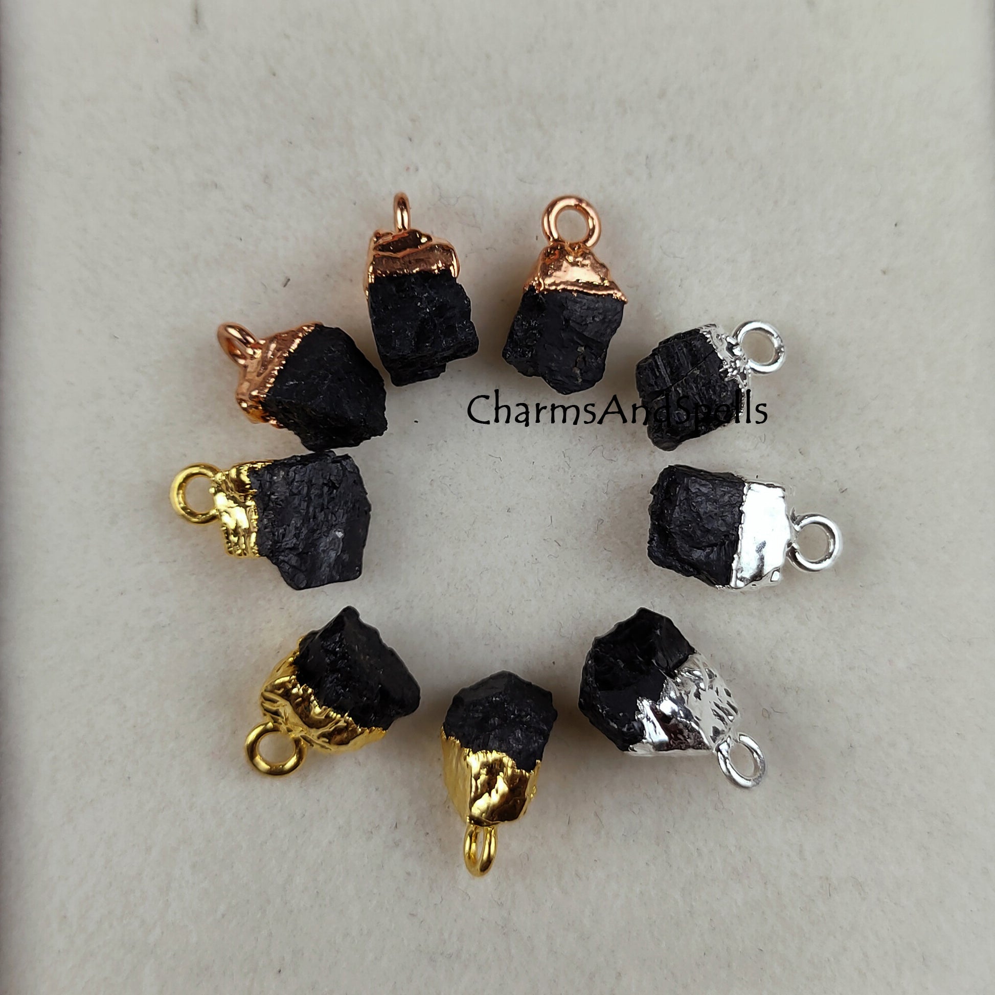 Raw Black Tourmaline Crystal Connector | Protection & Grounding Stone Pendant