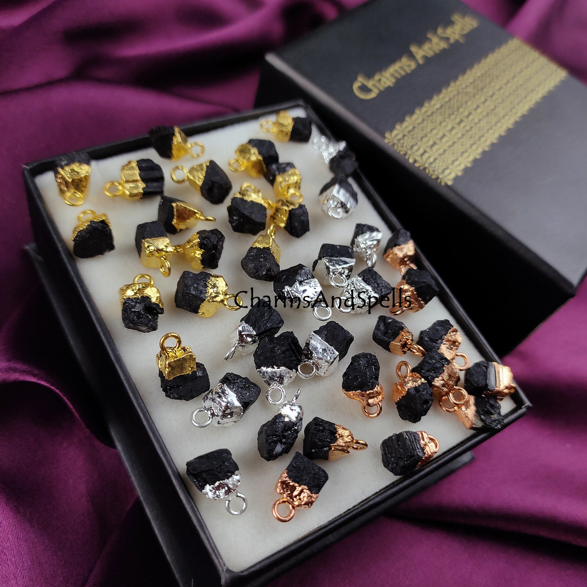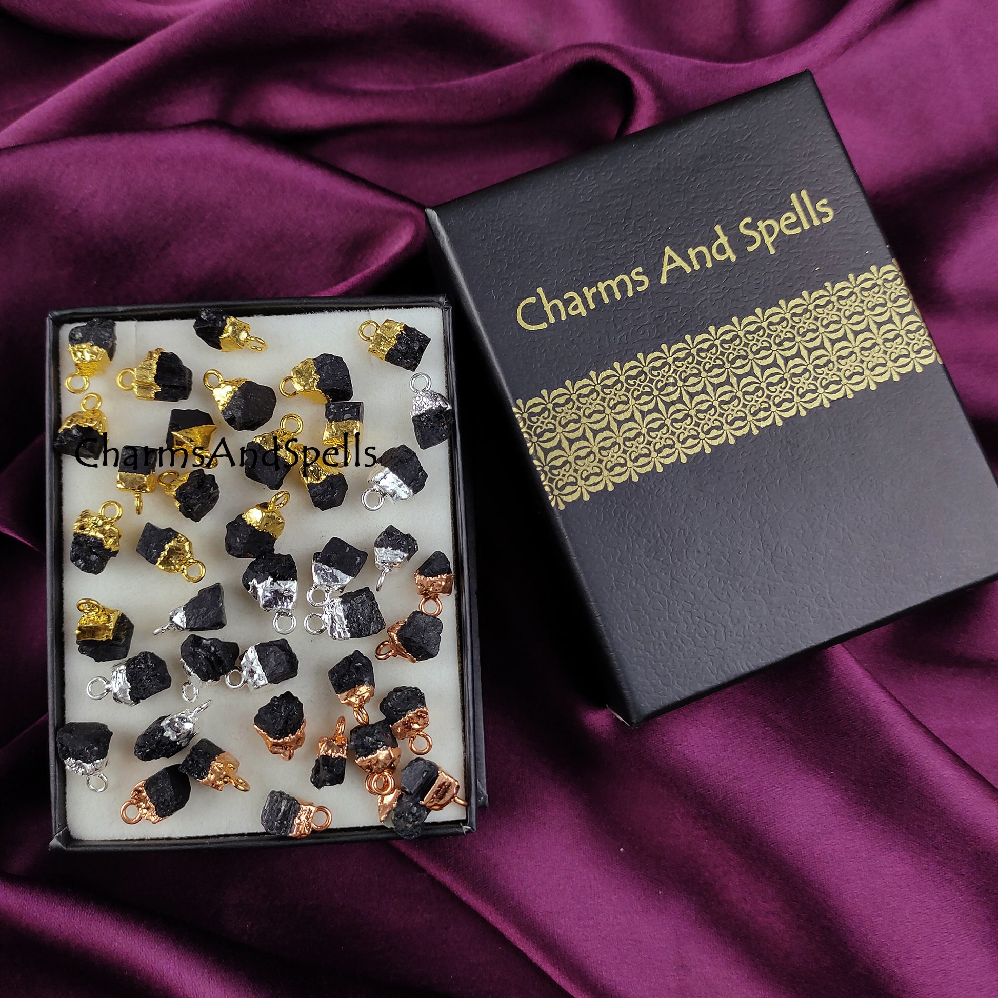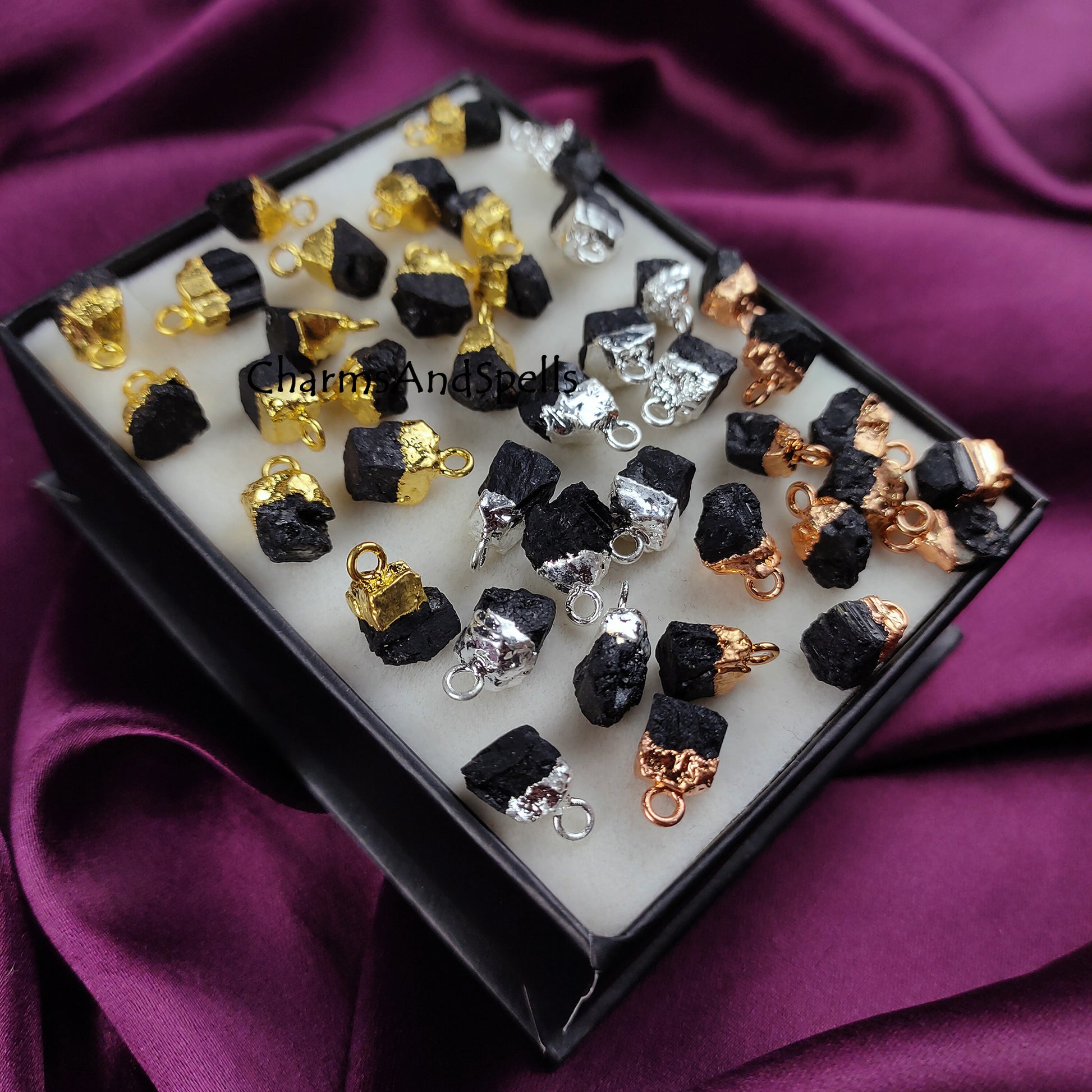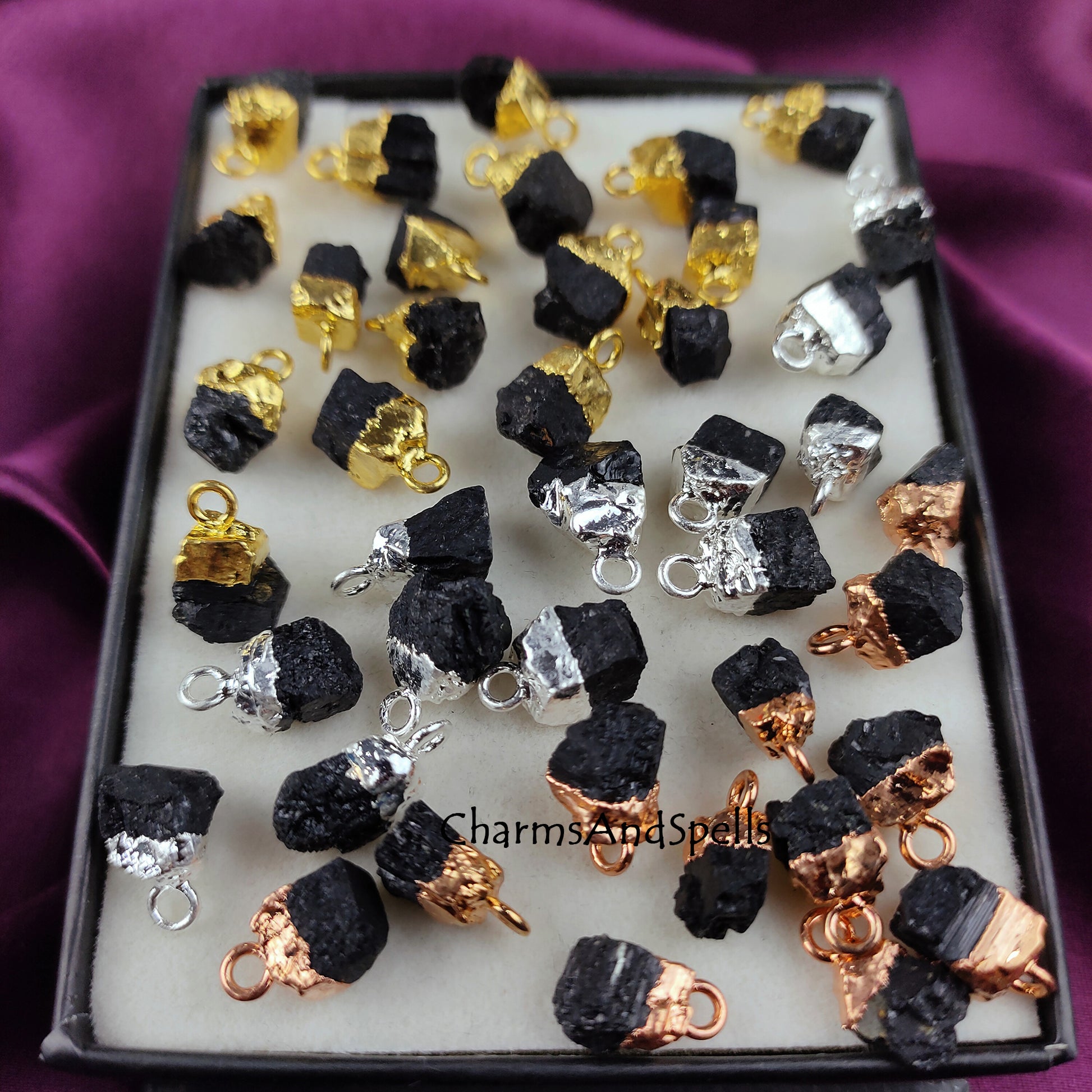 Raw Black Tourmaline Crystal Connector | Protection & Grounding Stone Pendant