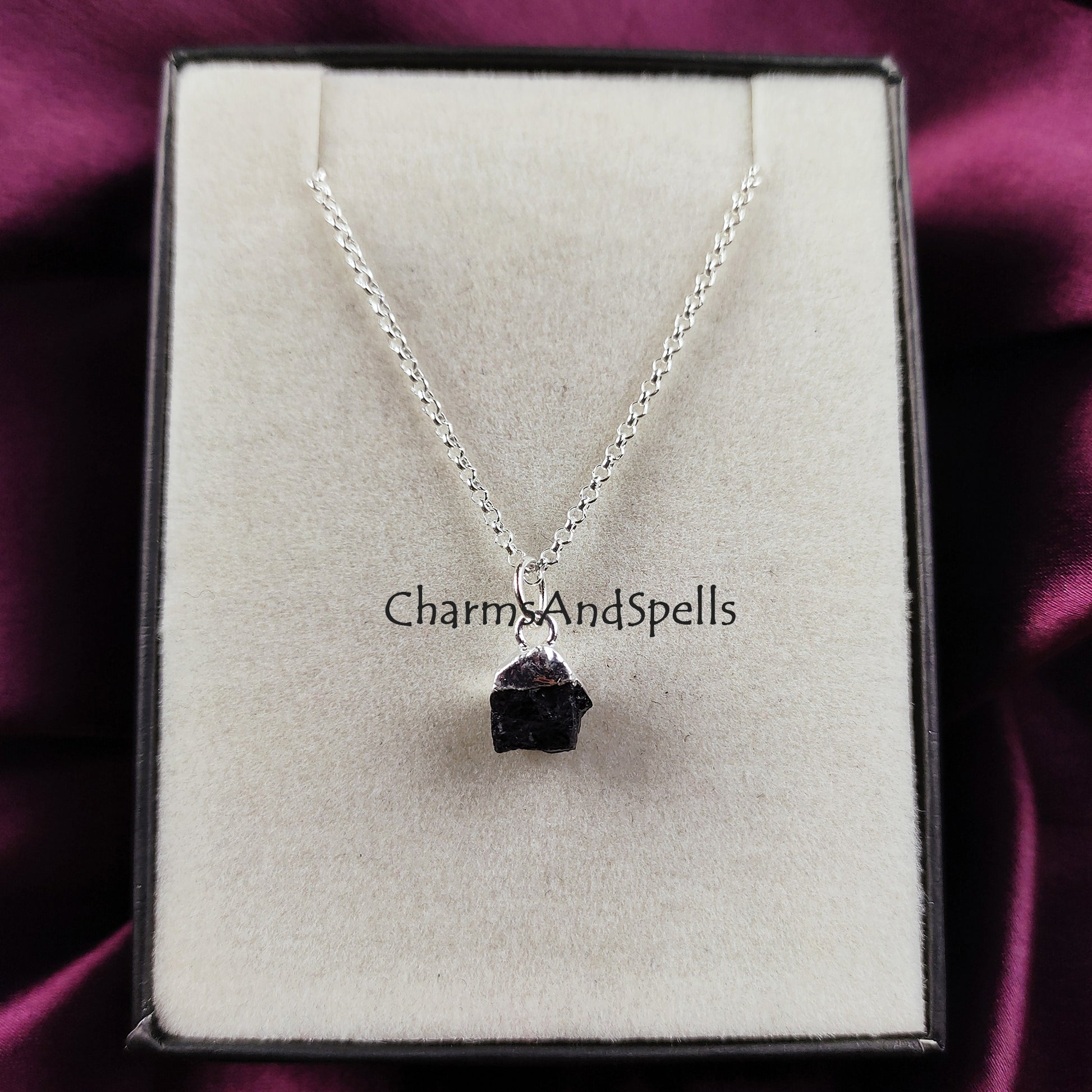 Raw Black Tourmaline Necklace | Grounding Crystal Pendant
