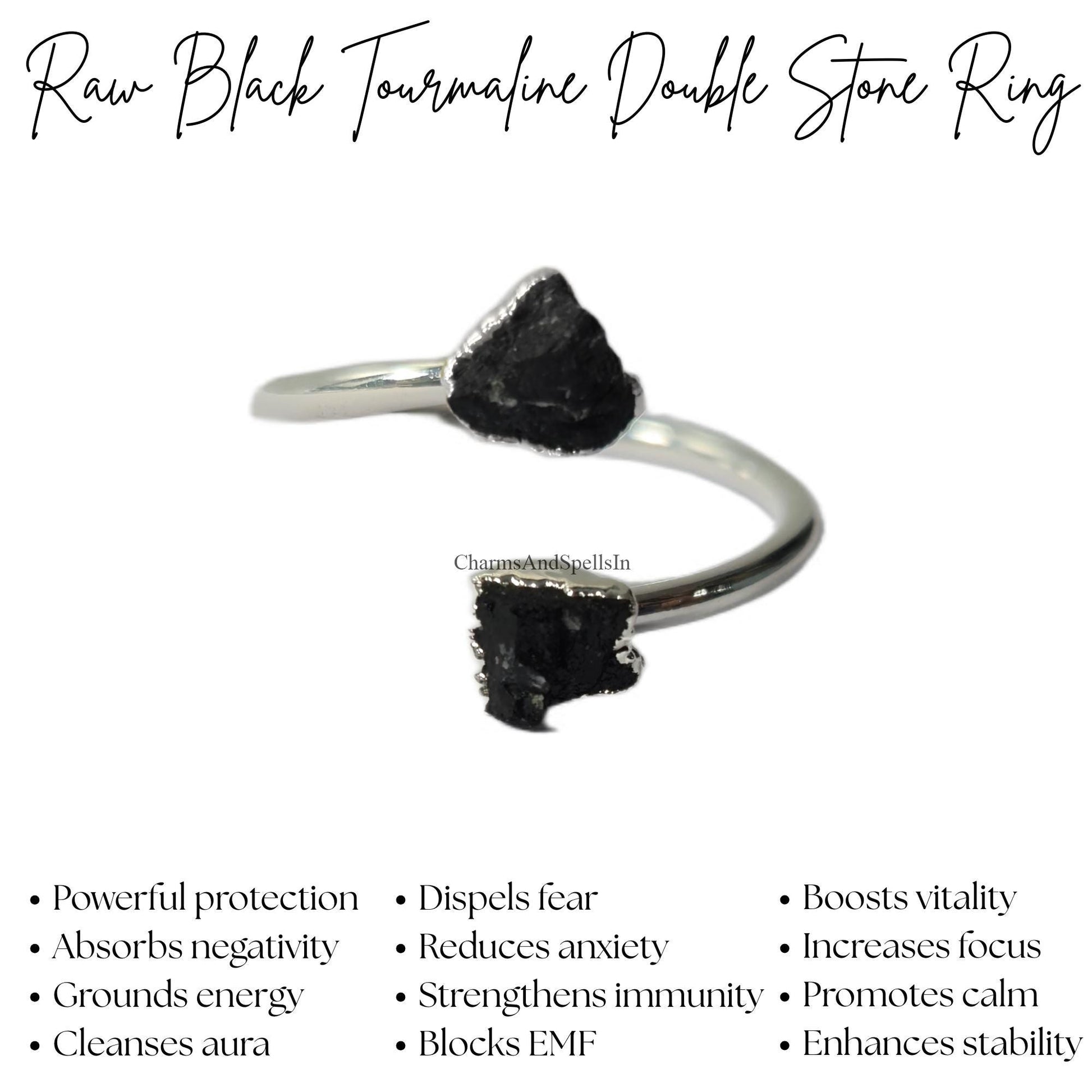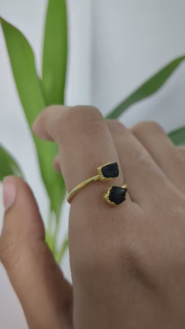Raw Black Tourmaline| Adjustable Gemstone Ring for Women| Protection Jewelry