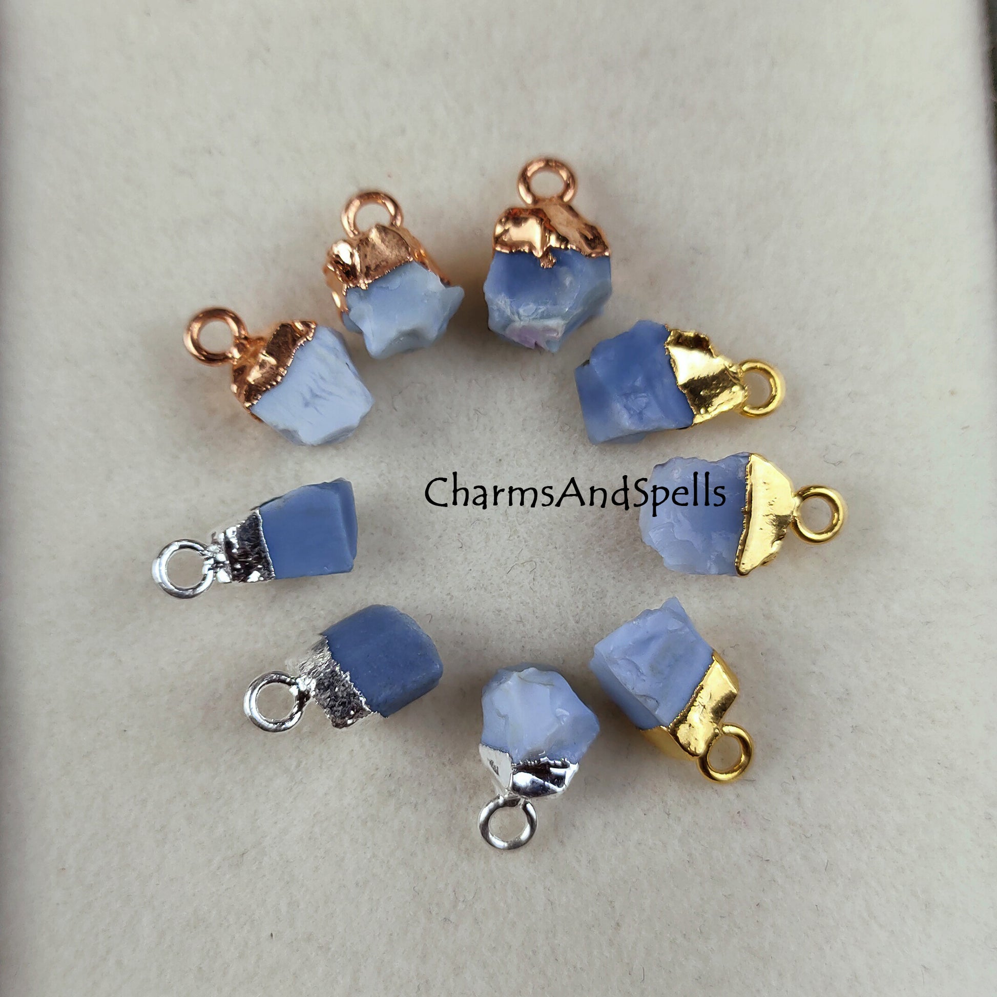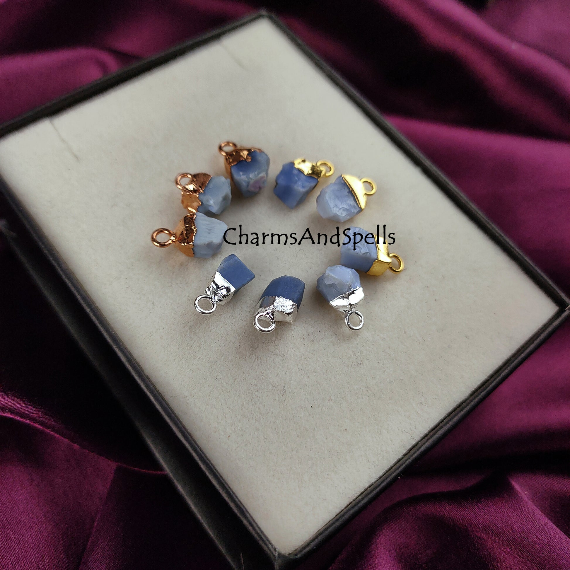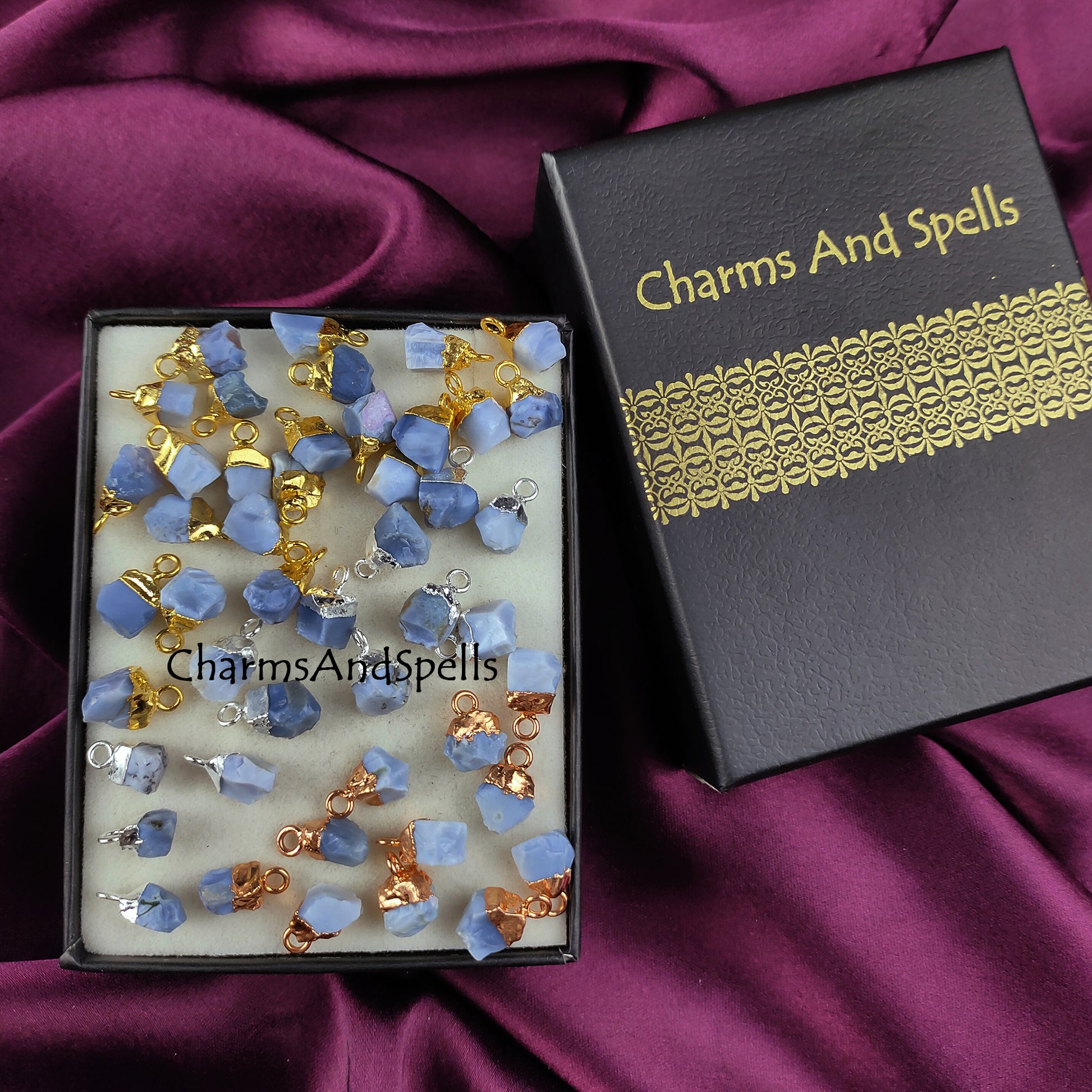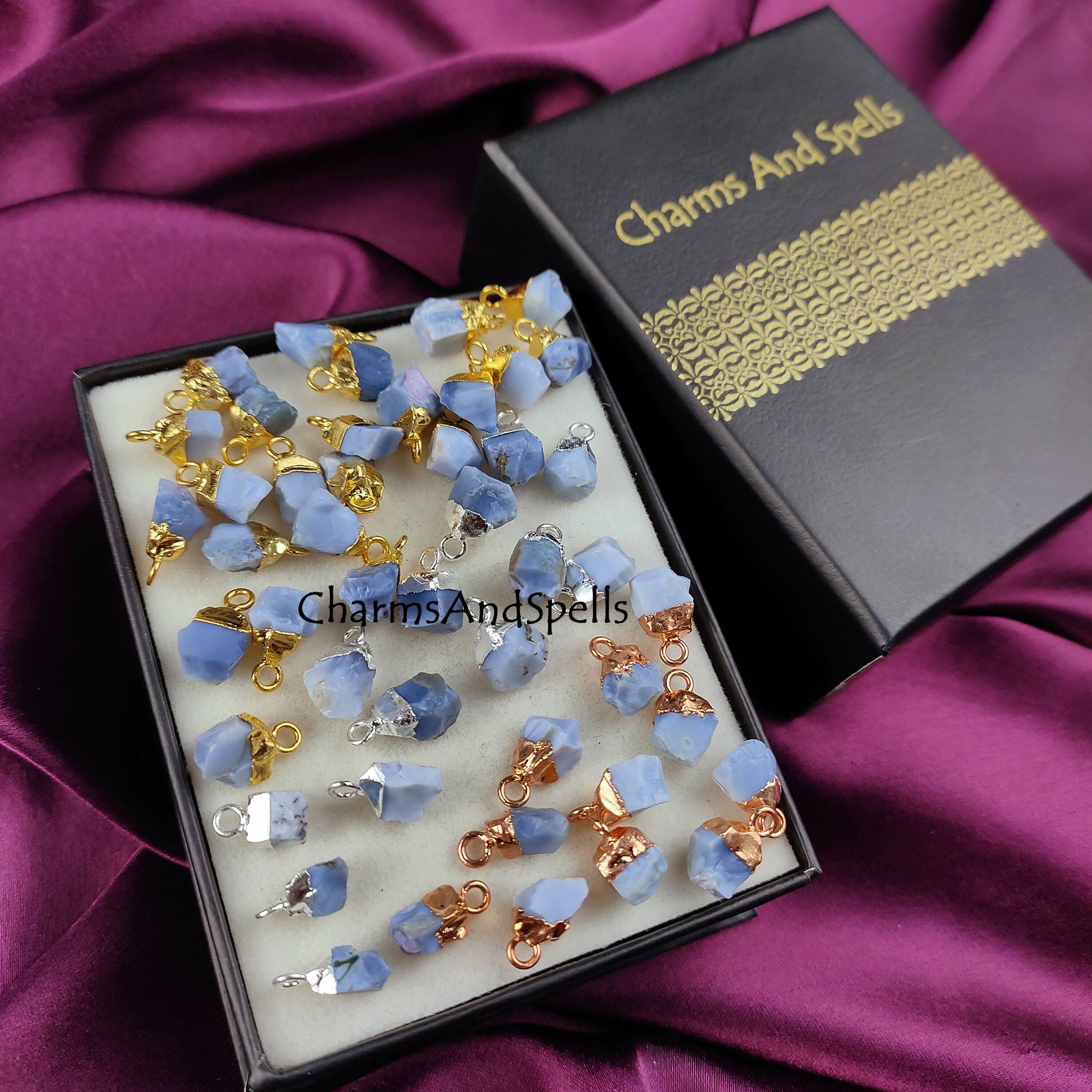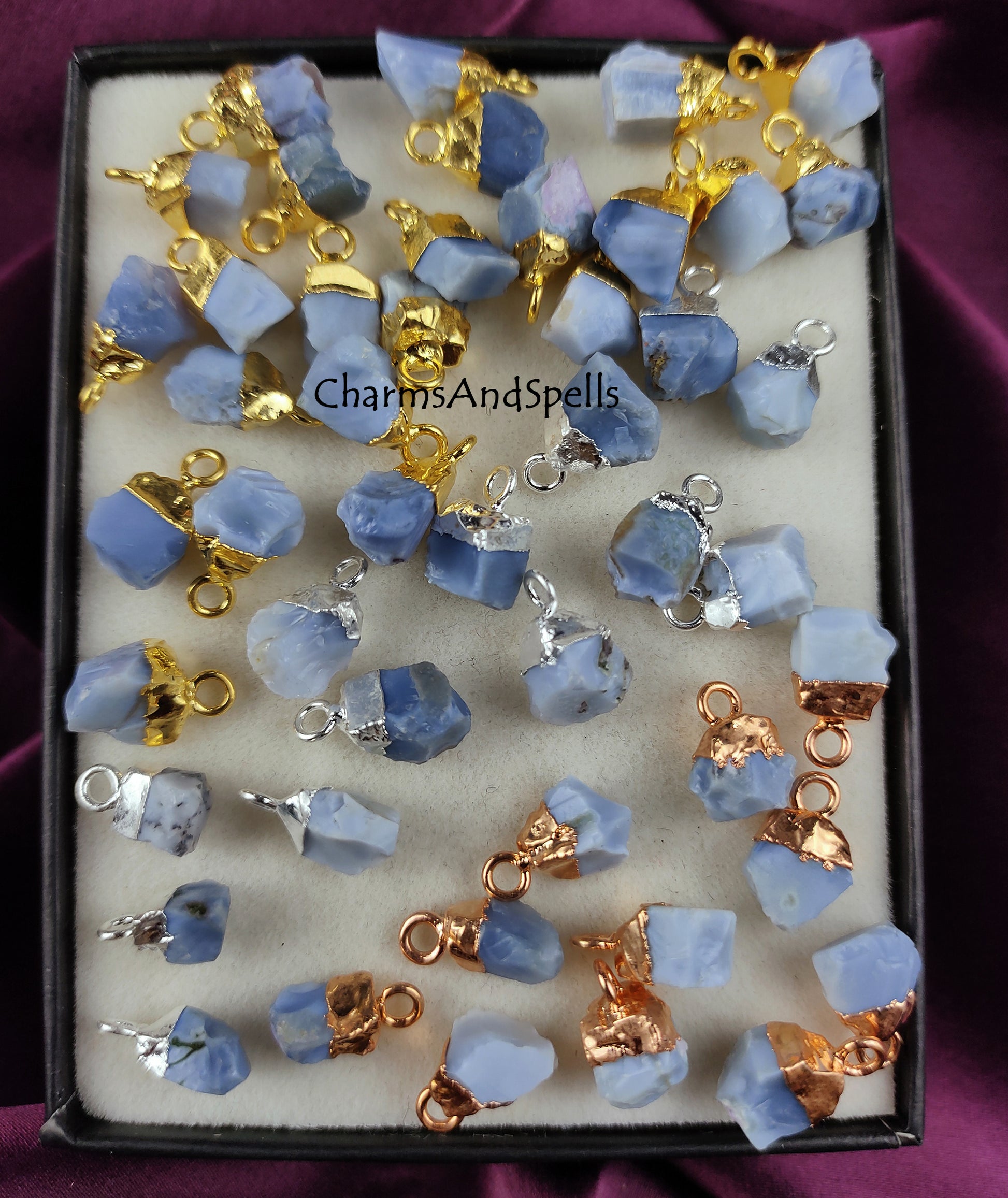 Raw Blue Opal Crystal Connector | Calm & Communication Stone Charm Pendant