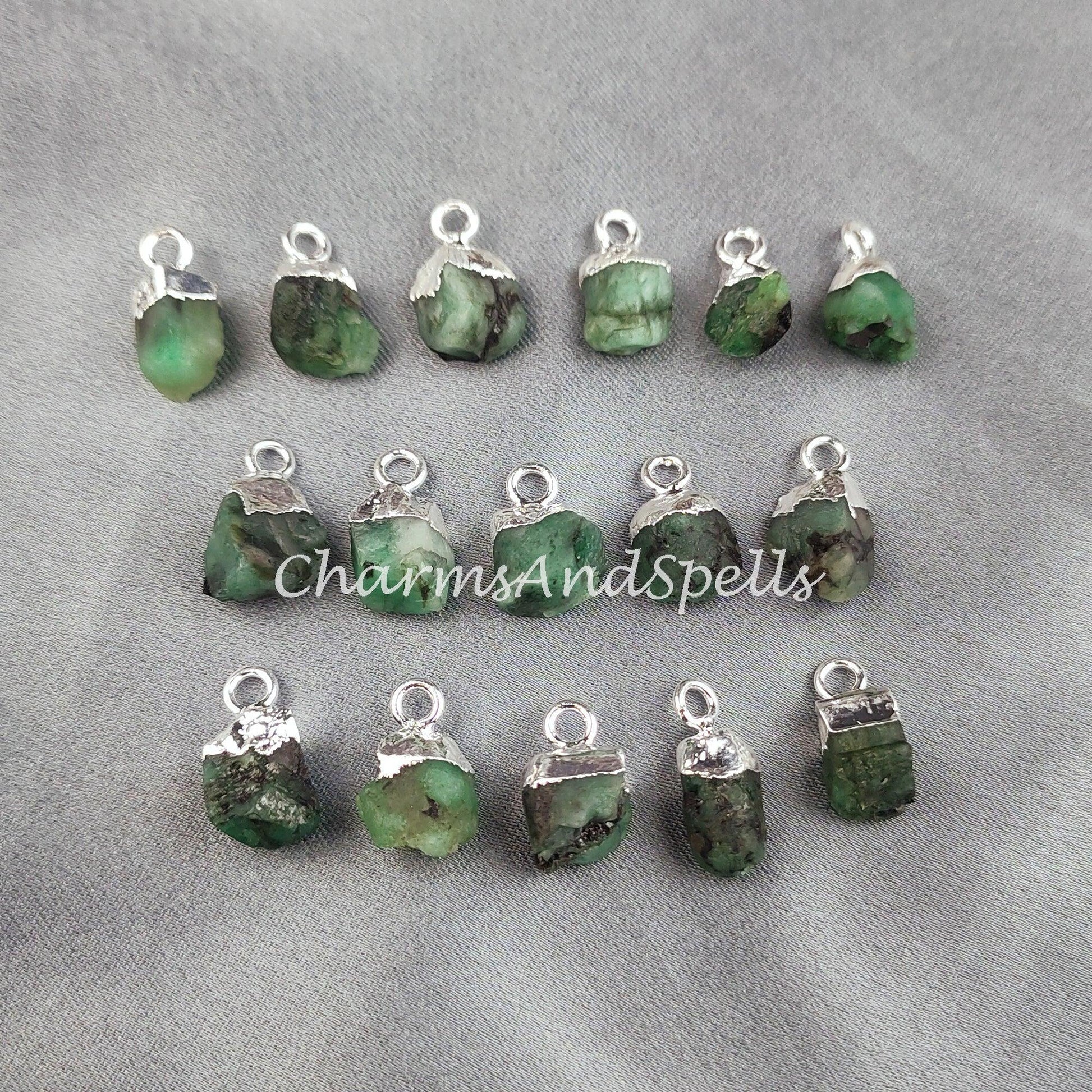 Raw Emerald Charm| Electroplated Pendant Connectors| Rough Gemstone Jewelry