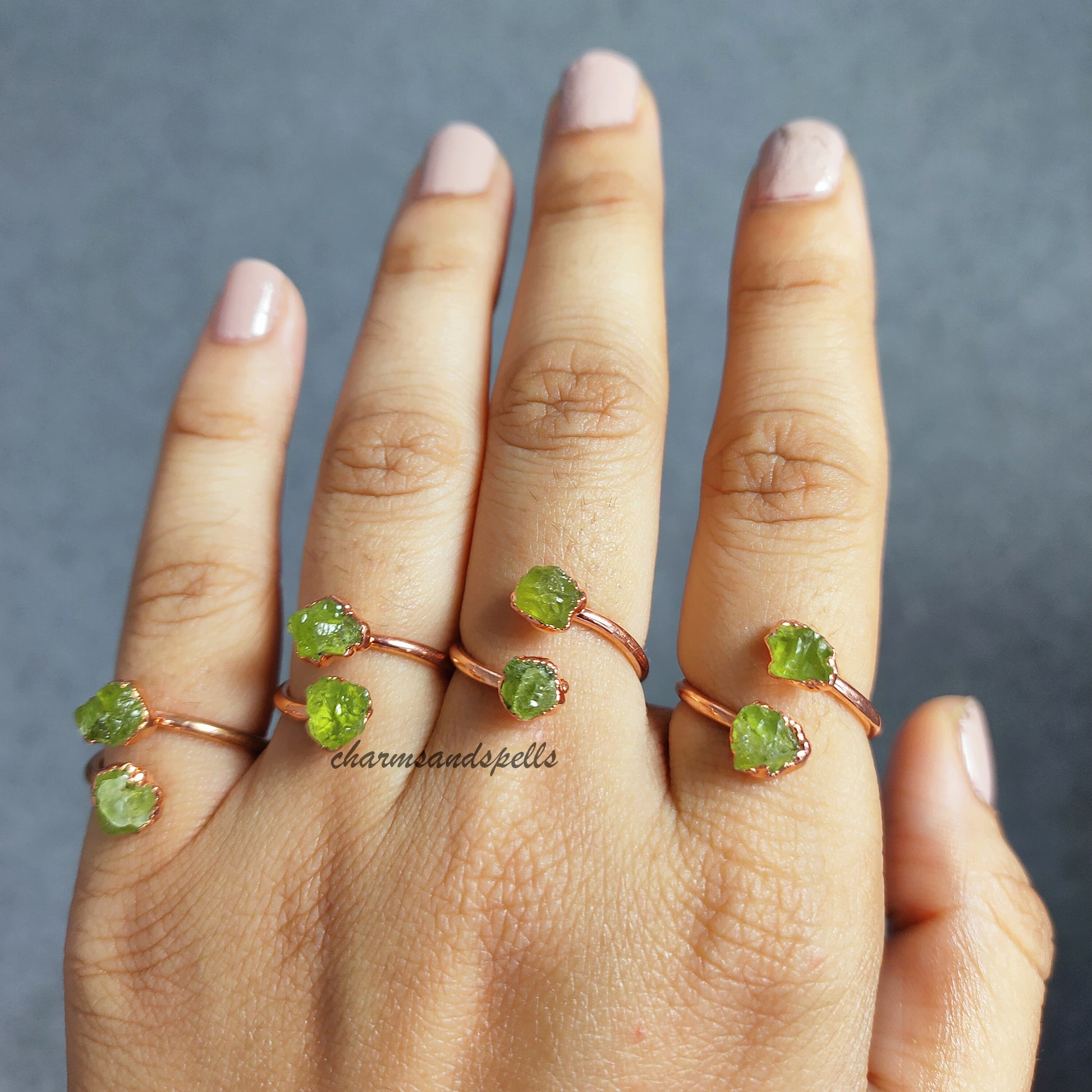 Raw Peridot Ring | Natural August Birthstone Healing Crystal Gemstone