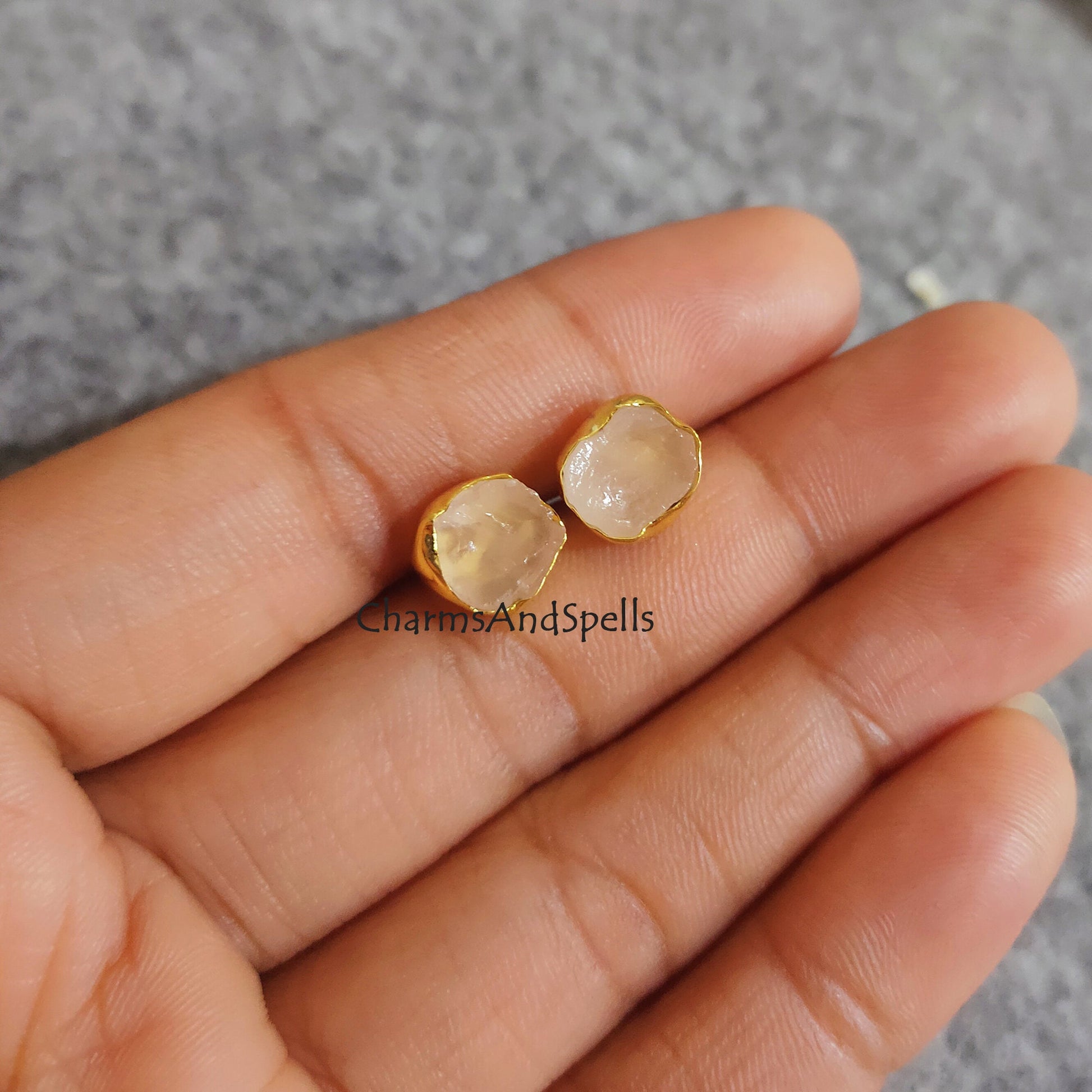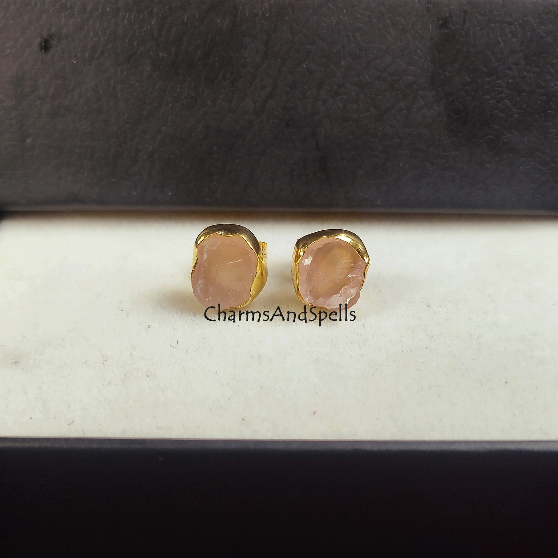Rose Quartz Stud Earrings | Natural Pink Crystal Jewelry | Wedding Gift
