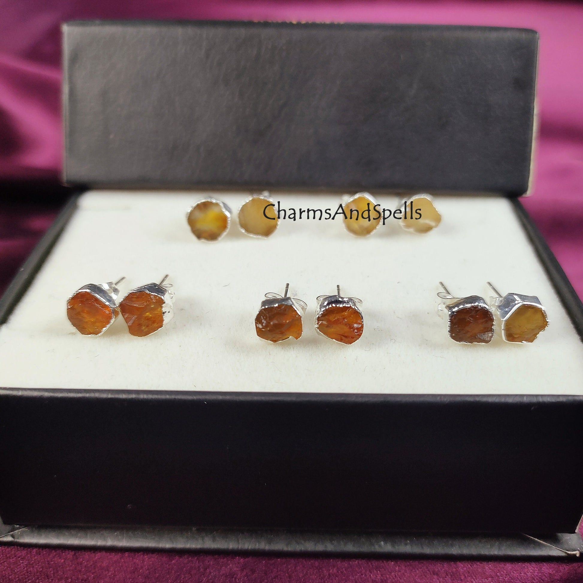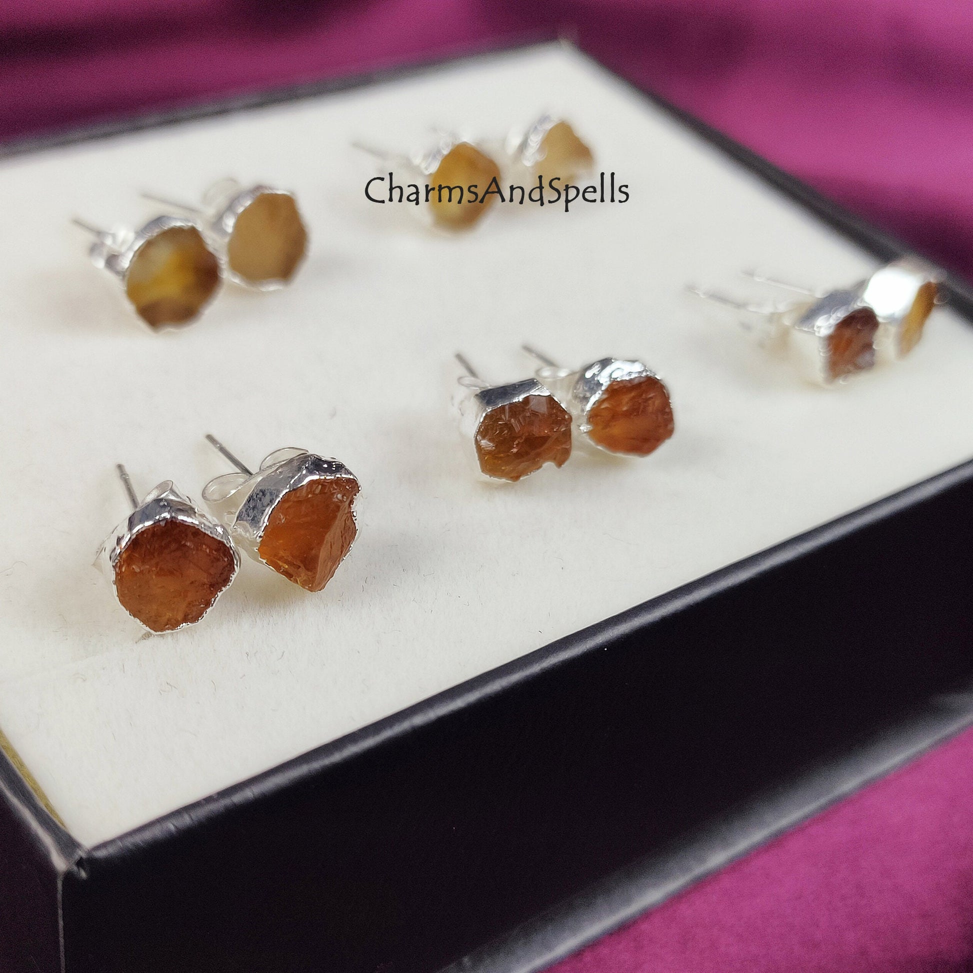 Natural Raw Yellow Citrine Gemstone Electroplated Earrings