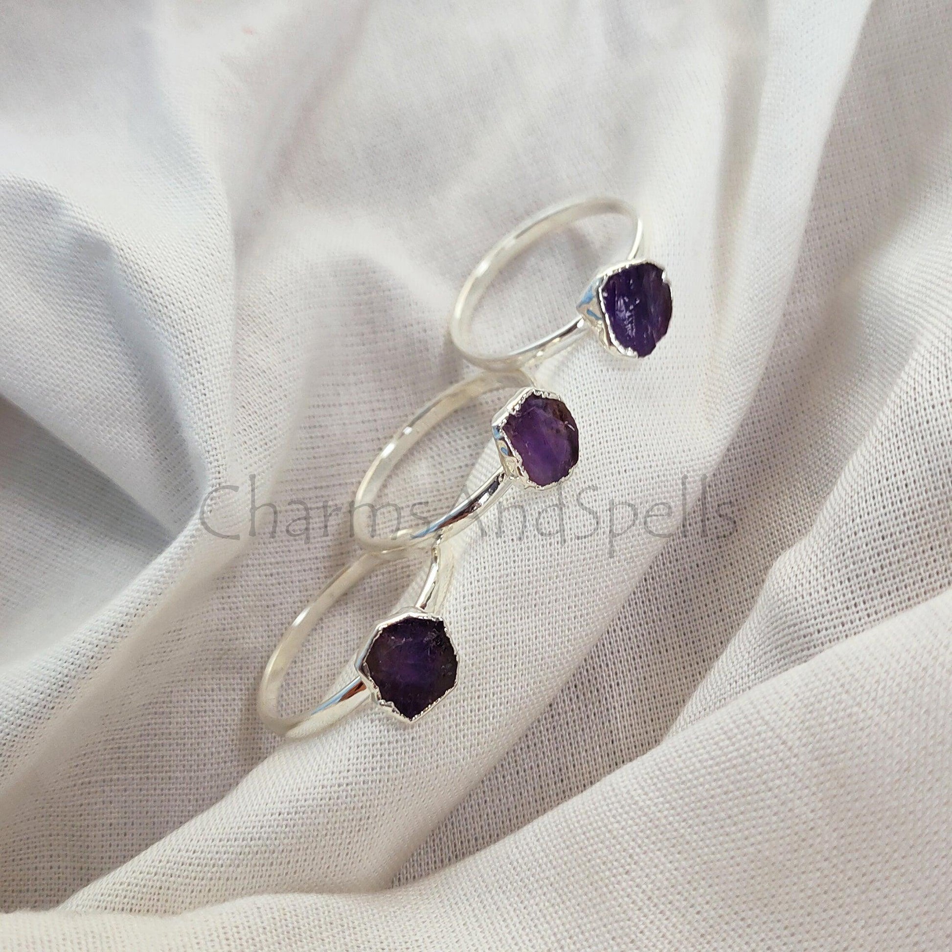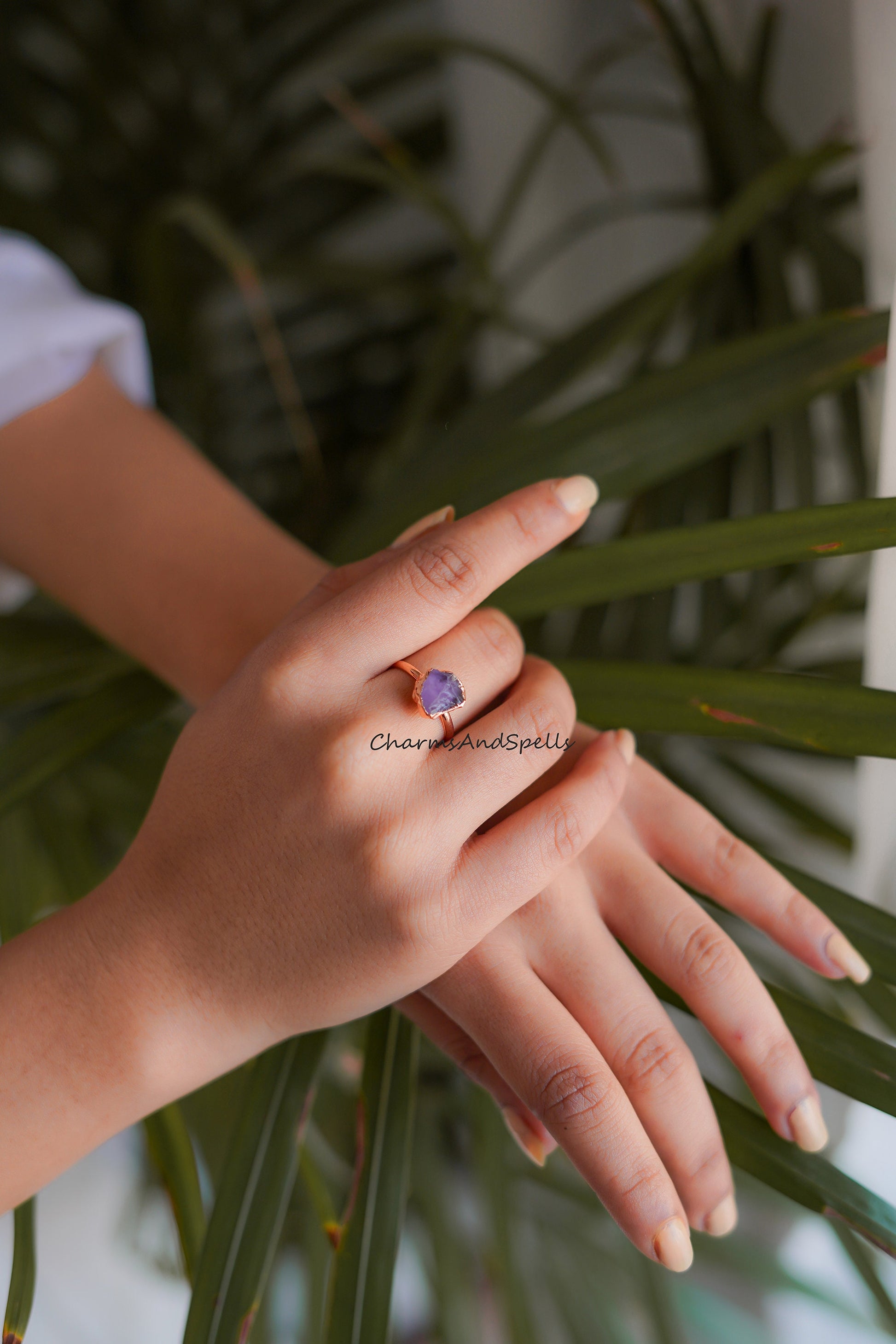 Rough Amethyst Ring| Crystal Adjustable Ring| Electroplated Boho Ring for Women