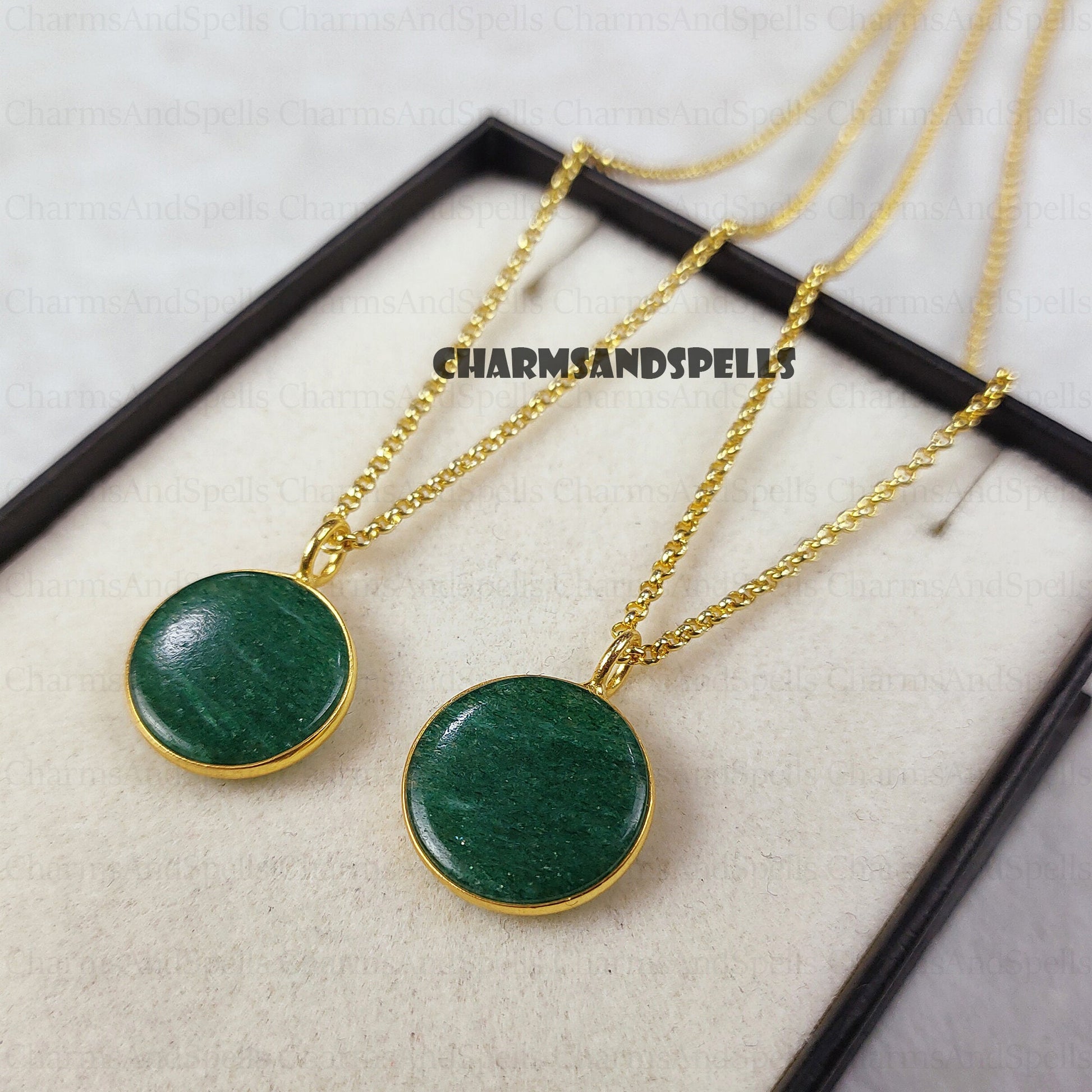 Stunning Aventurine Coin Pendant Necklace For Man & Women