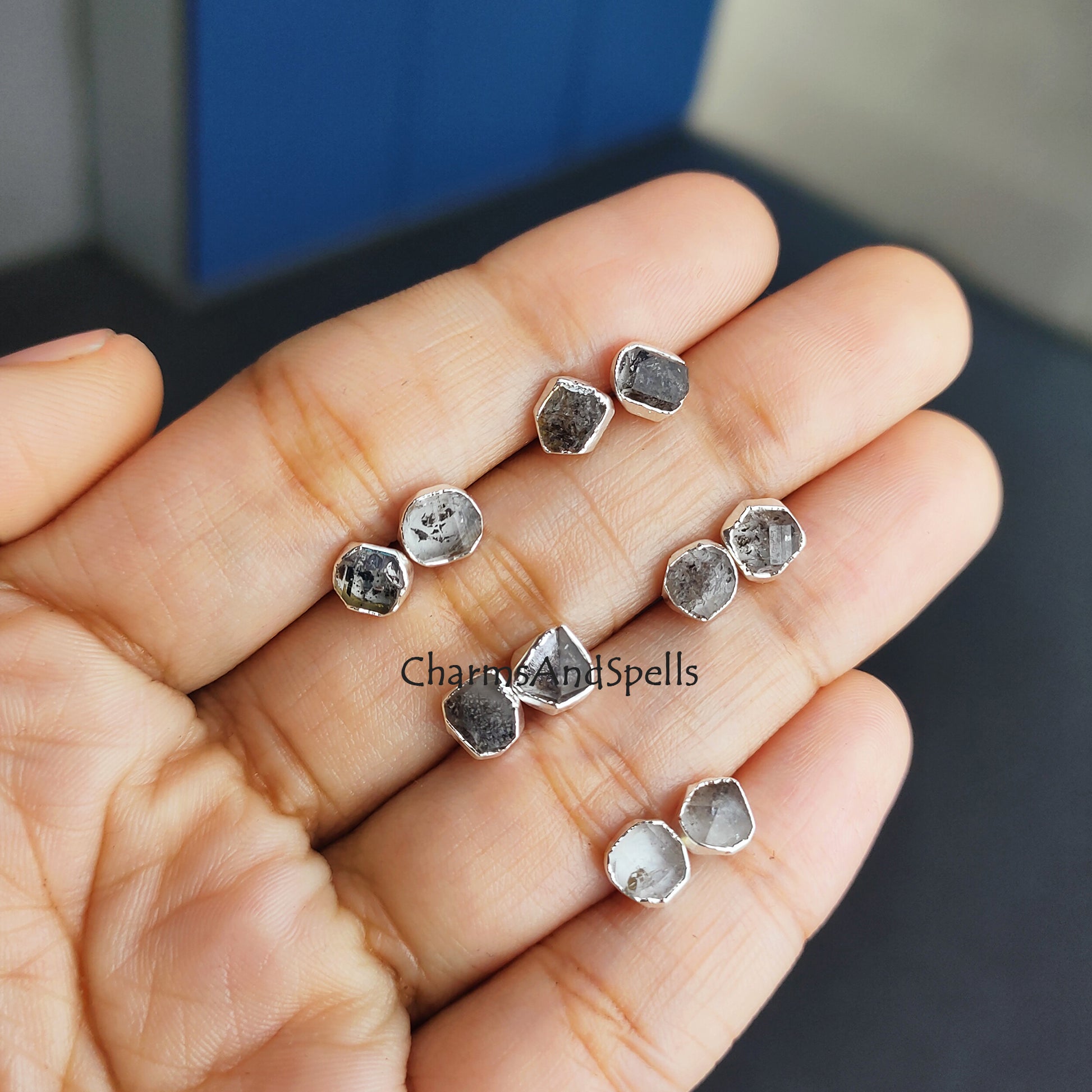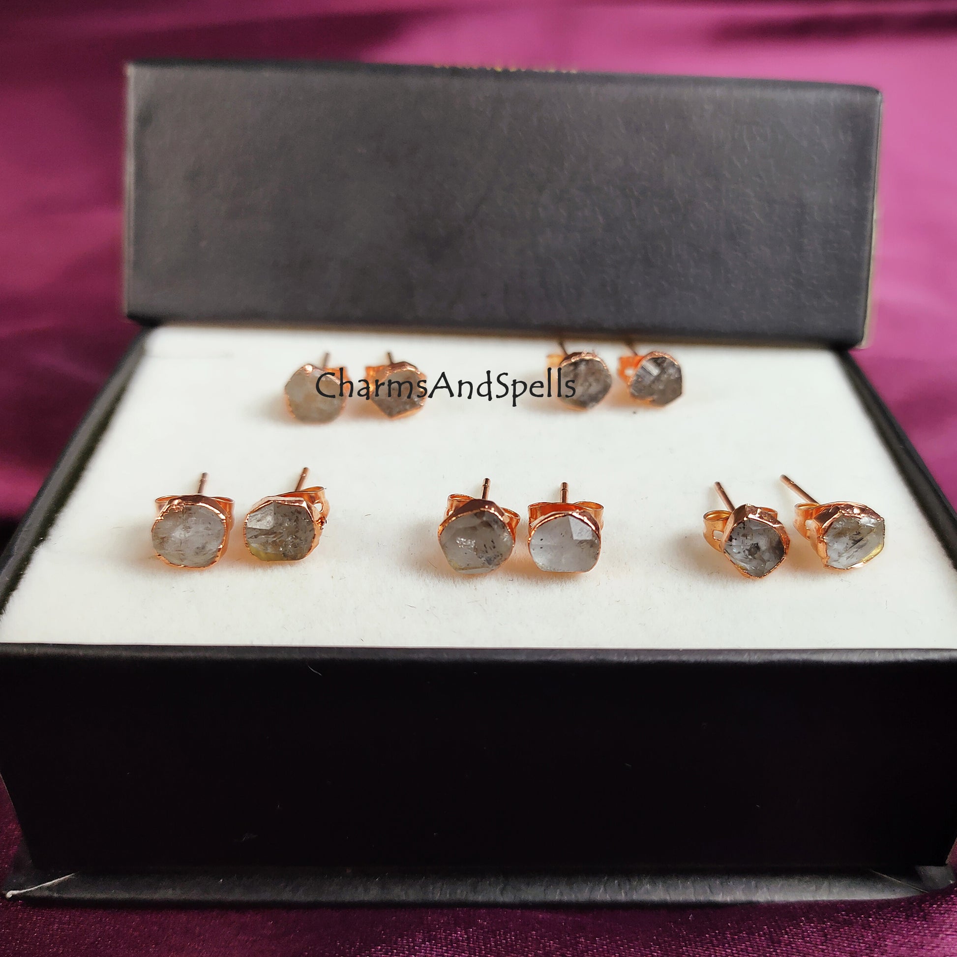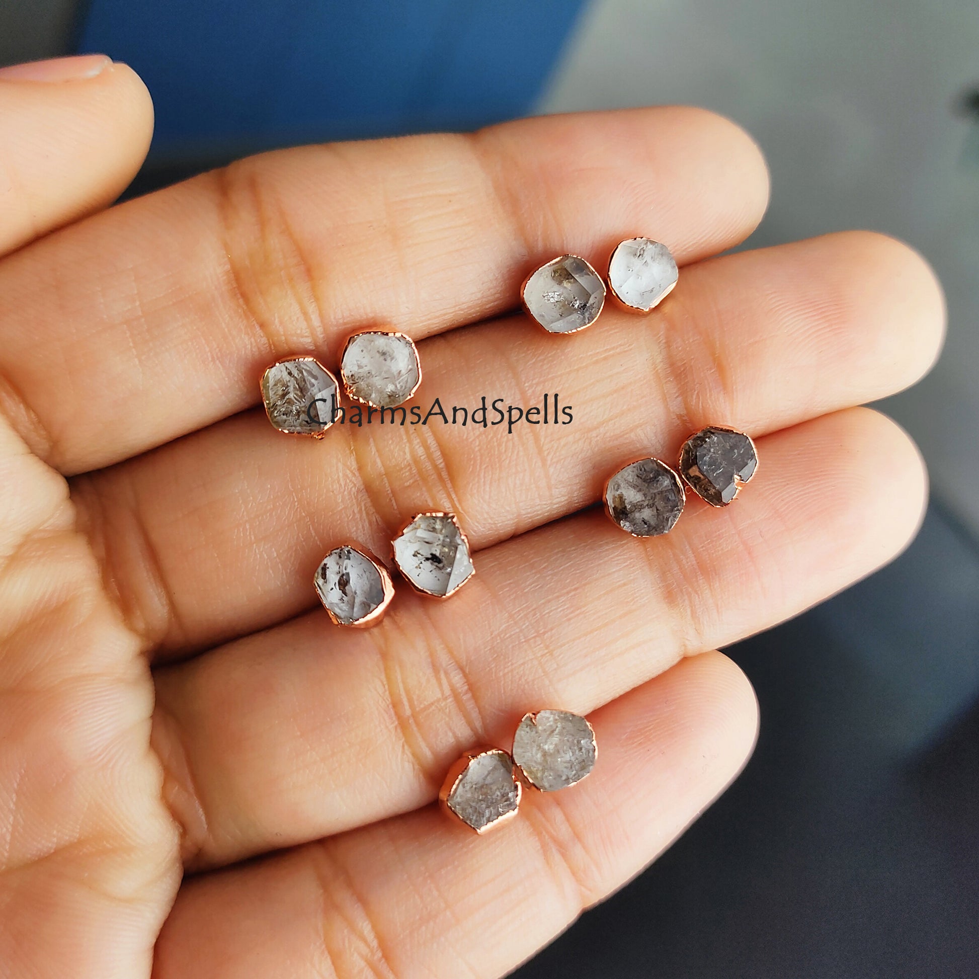Tiny Herkimer Diamond Stud Earrings| Dainty Gold Electroplated Minimalist Jewelry