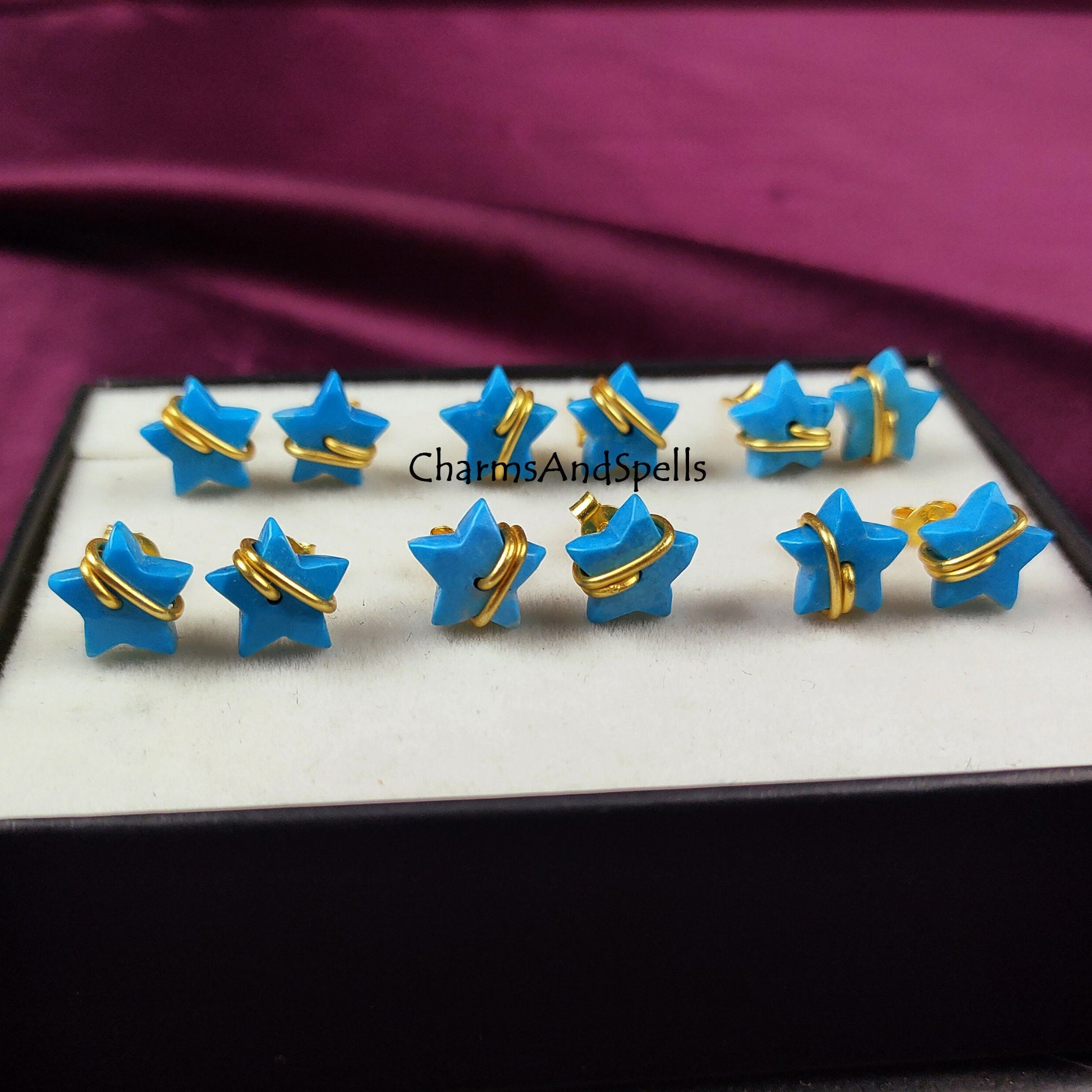 Howlite Turquoise Star Studs In Silver Wire Wrapping